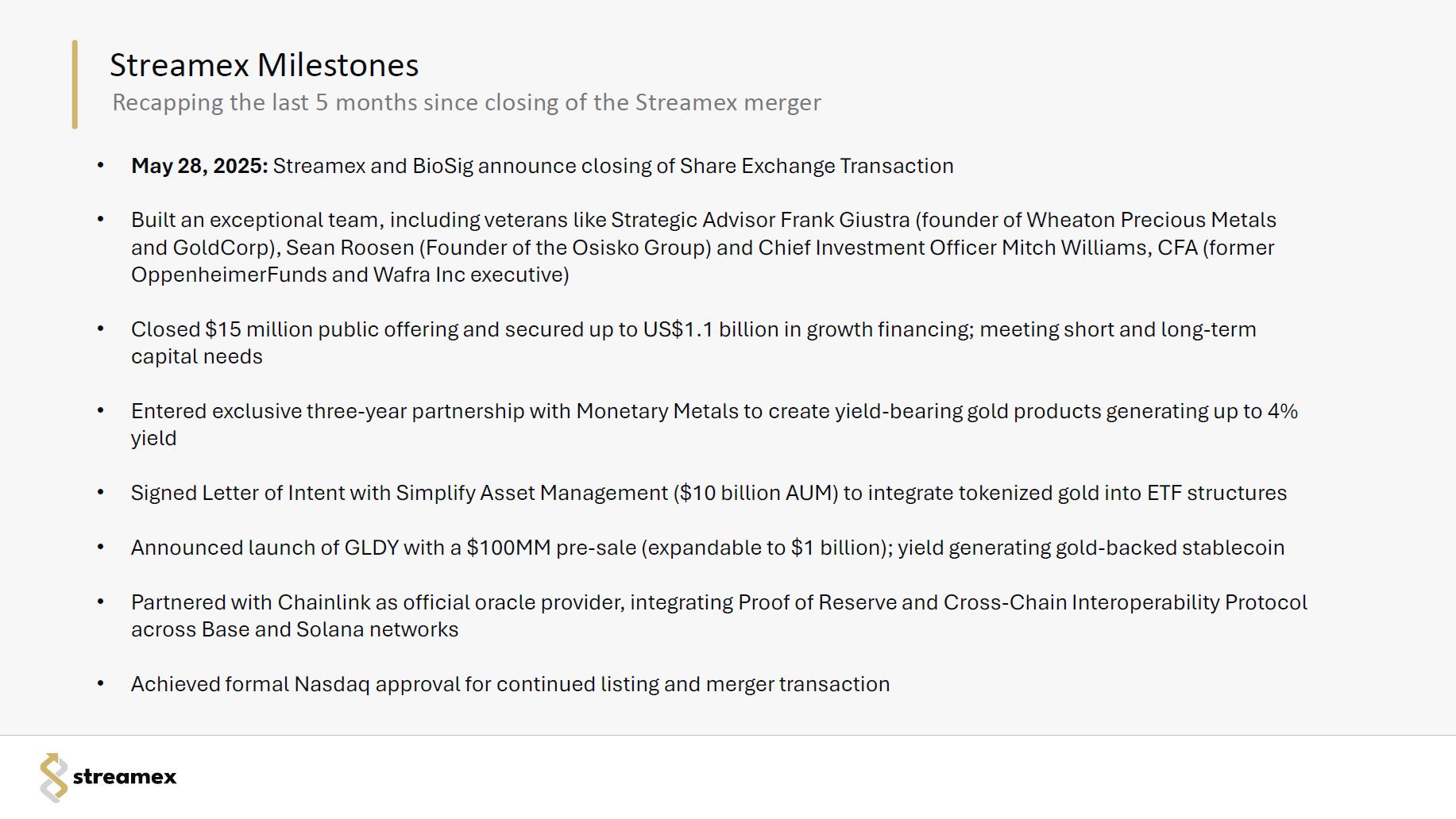 Accordingly, the Acquisition Proposal was approved by the Company’s stockholders and the acquisition of Streamex has closed.