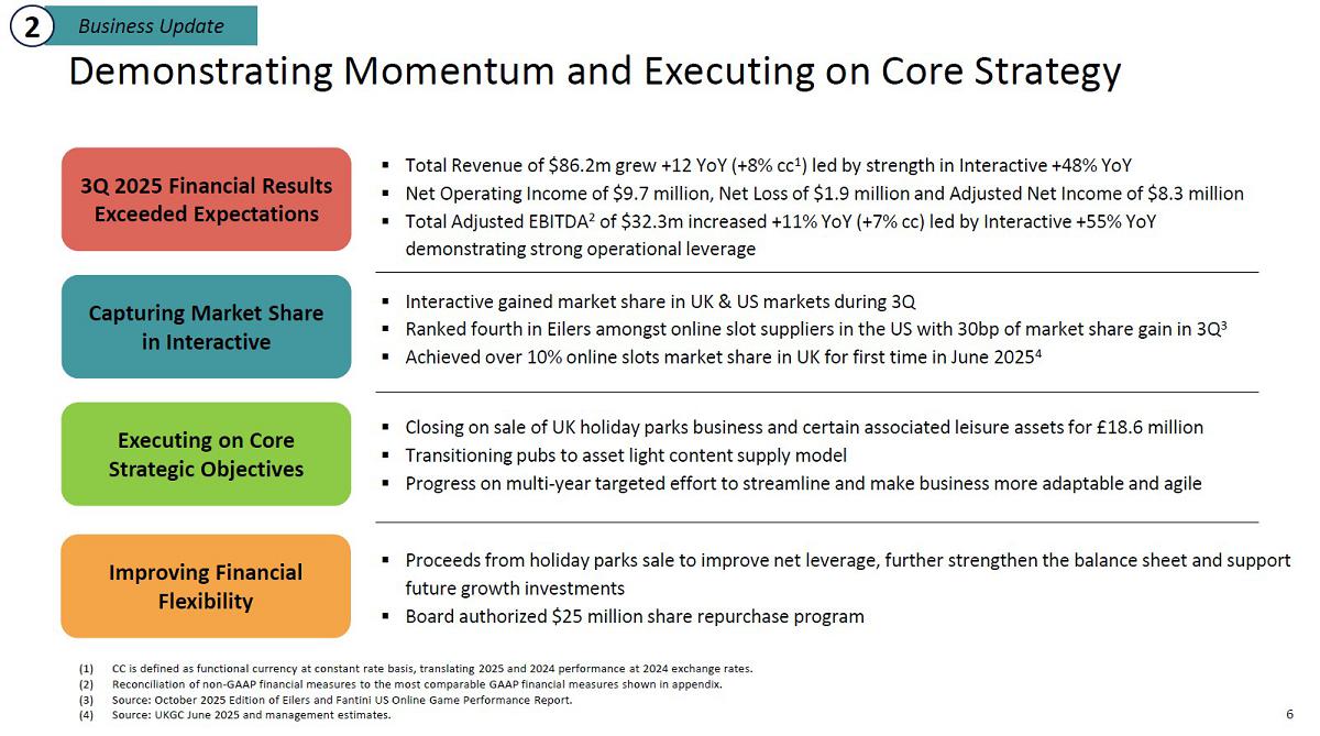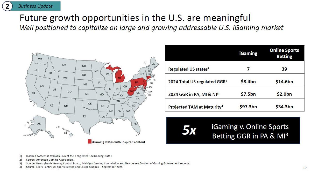 2025年11月5日、ニューヨーク州ニューヨーク - ゲームコンテンツ、テクノロジー、ハードウェア、サービスの大手B2Bプロバイダーであるインスパイアード・エンターテインメント社(以下「インスパイアード」または「当社」)(NASDAQ:INSE)は本日、2025年9月30日に終了した3カ月間の決算を報告し、当社の経営戦略の加速に関する最新情報を提供しました。