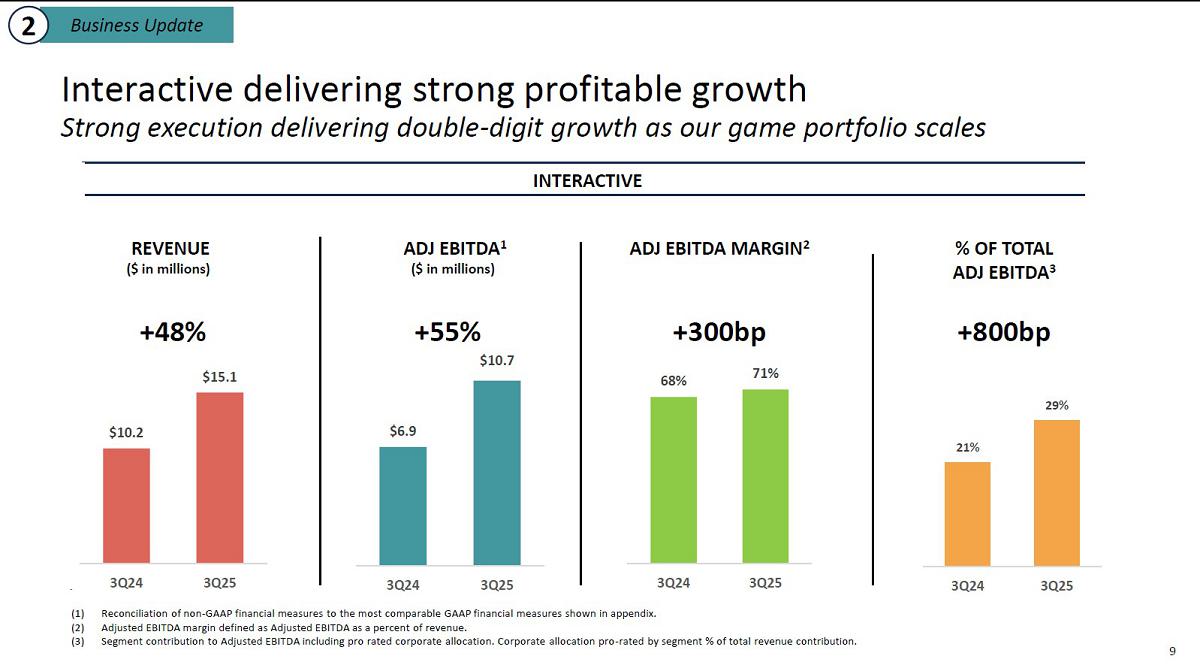 調整後EBITDAは前年比11%増の3,230万ドル、インタラクティブ調整後EBITDAが前年比55%増と過去最高となったことが牽引 |