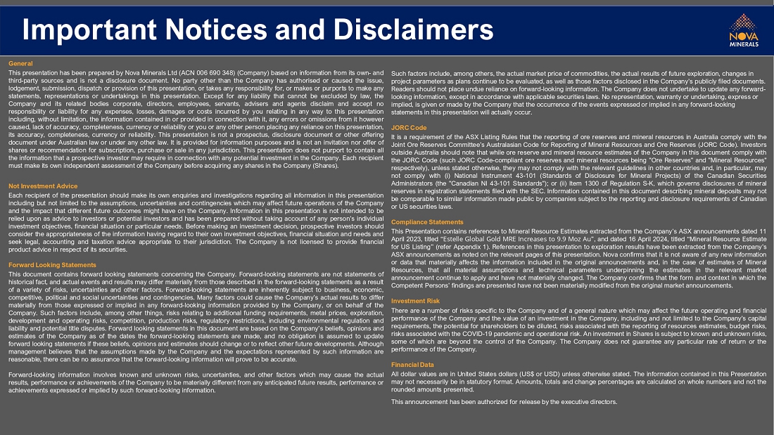 Further discussion and analysis of the Estelle Project is available through the interactive Vrify 3D animations, presentations, and videos, all available on the Company’s website. www.novaminerals.com.au