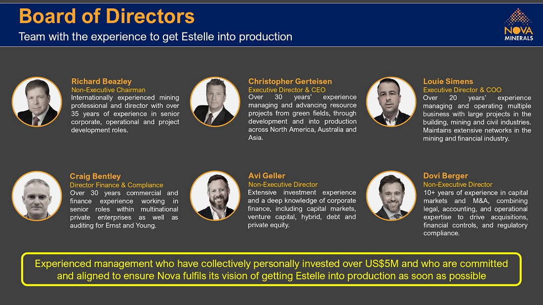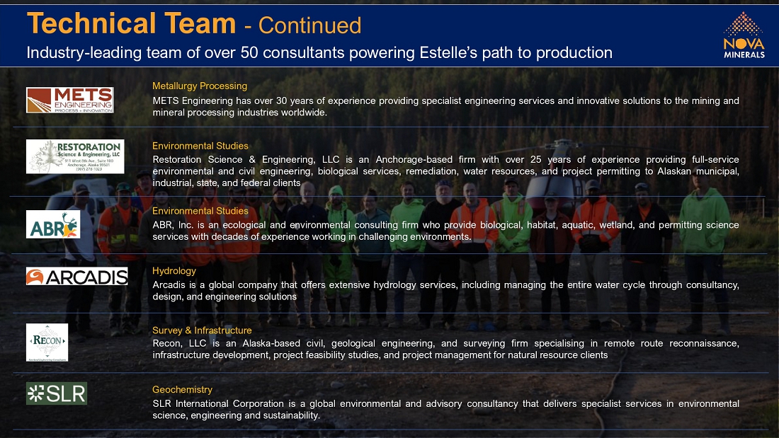 through the development of the Estelle gold and critical minerals district. With that in mind I would like to acknowledge the diligent contributions from the Nova team, supporting stakeholders, and fellow Board of Directors for another immense year with all its achievements. We believe that Novais well position for another exciting year ahead and we look forward to updating the market on our progress.