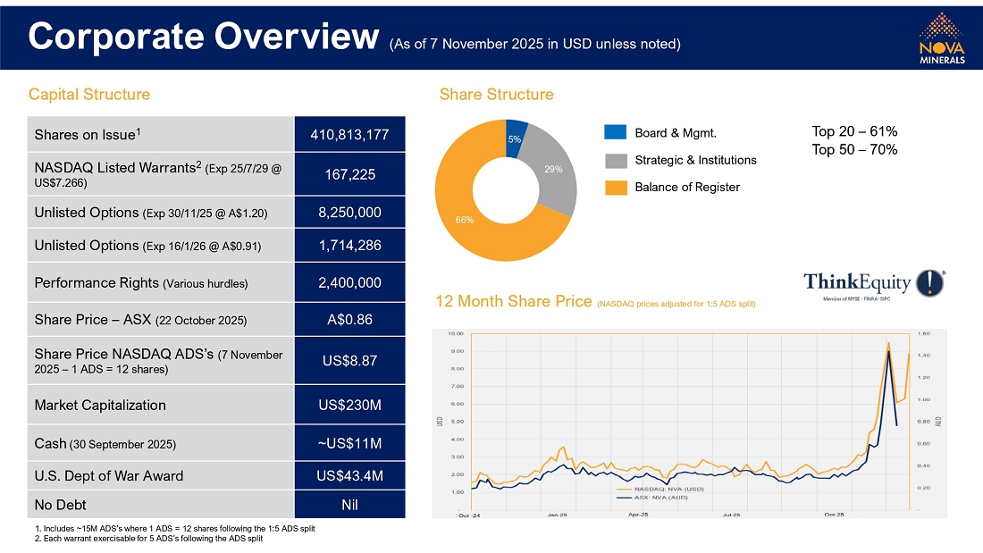 With the U.S. Department of War’s endorsement which provides some validation to the strategic importance of Nova Minerals’ antimony assets, we continue to advance our dual-commodity strategy: