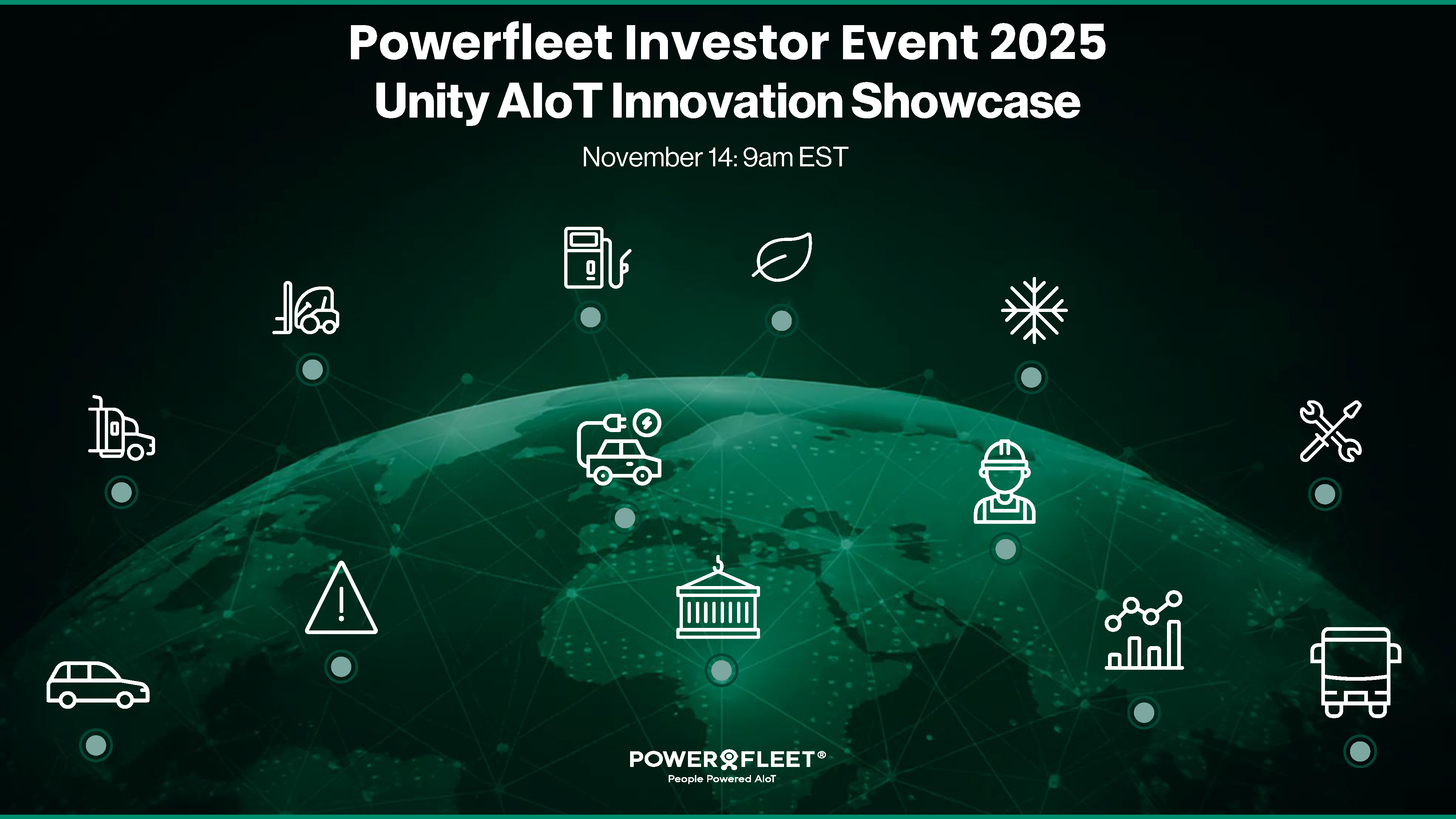 パワーフリートは、2025年11月14日(金)午前9時~11時(米国東部時間)に、金融アナリストおよび機関投資家向けのバーチャルイベント「Unity Innovation showcase」を開催します。この没入型イベントでは、企業が安全性、可視性、コンプライアンス、持続可能性、業務効率をスケールアップする方法を再定義するPowerfleetのデバイス非依存型プラットフォームであるUnityが生み出す深い顧客価値にスポットライトを当てます。