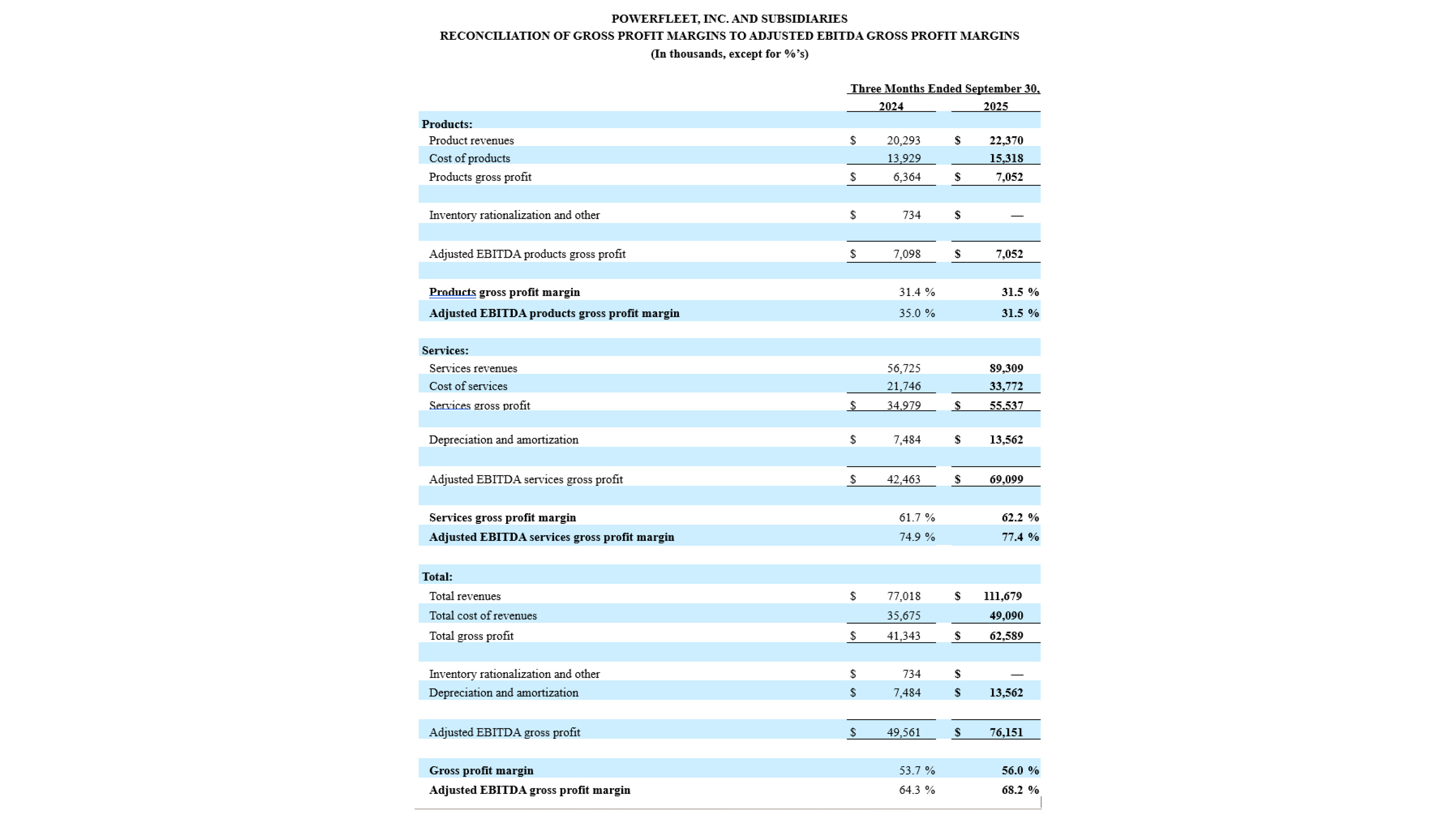 | ♦ | PowerfleetのAIoTプラットフォームの採用拡大により、総収益は前年同期比45%増、前四半期比7.3%増の1億1170万ドルを記録した。 | |