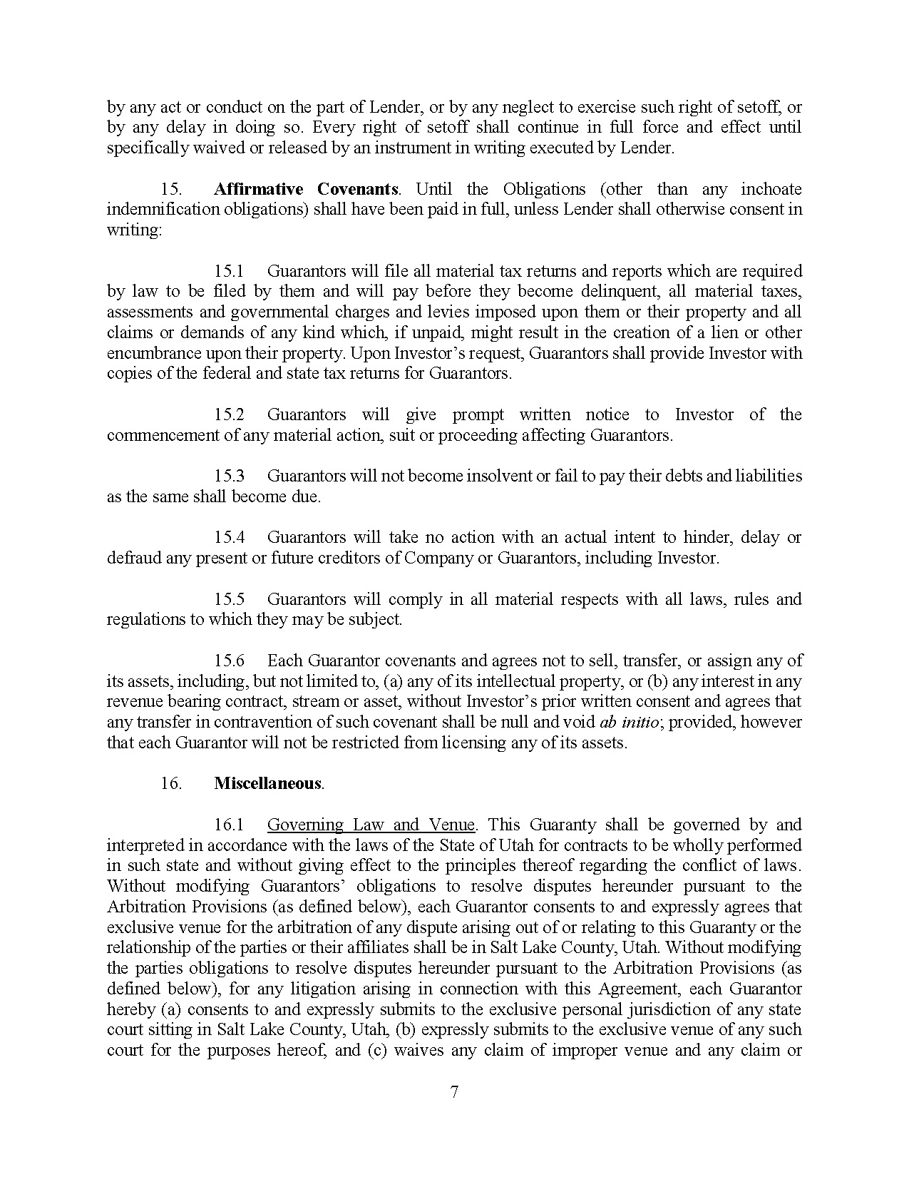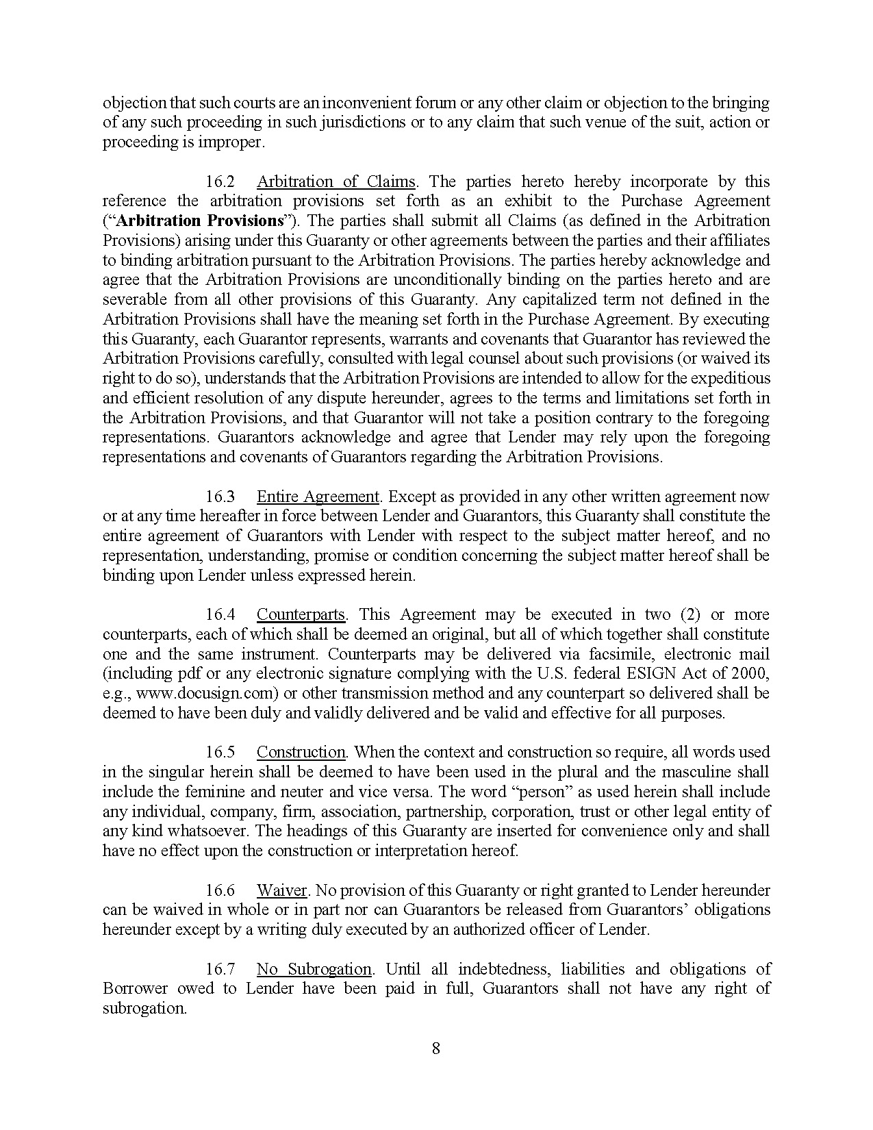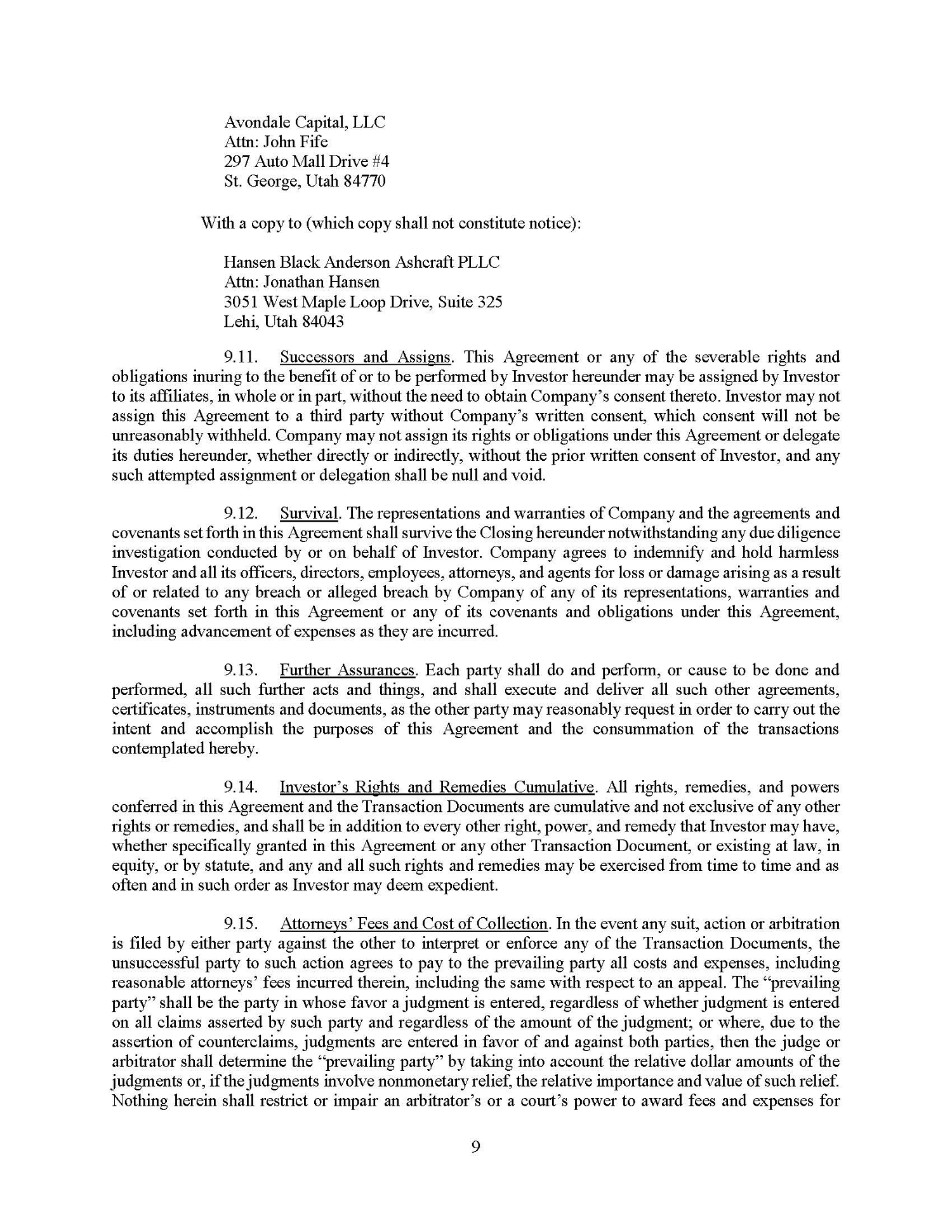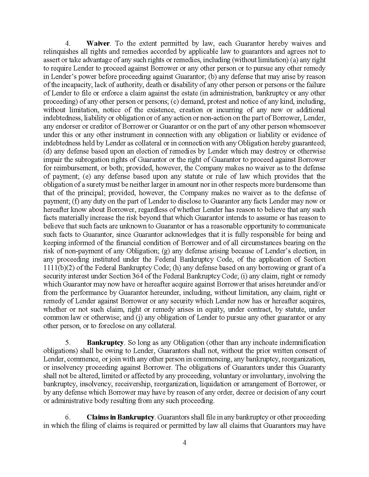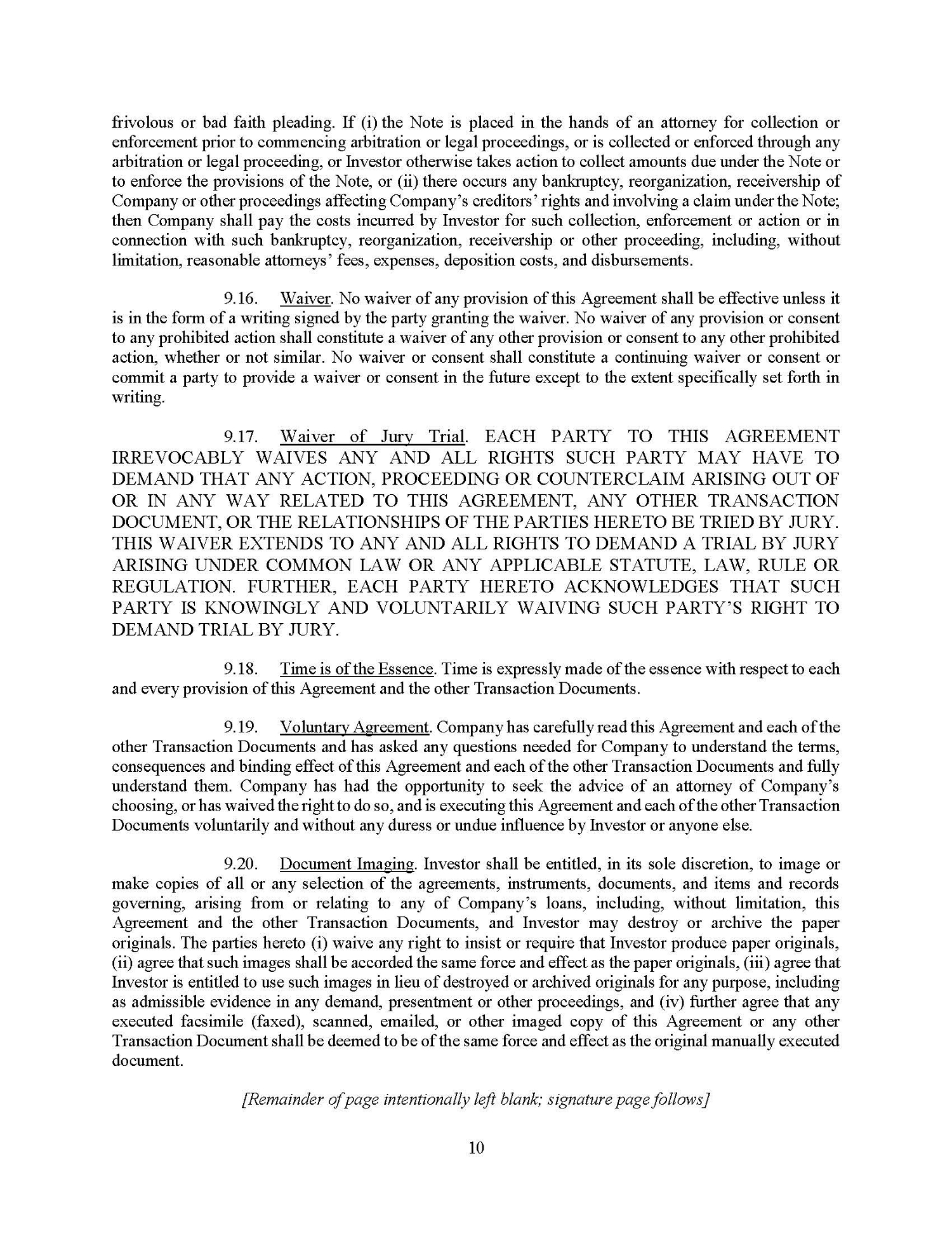 The Note Purchase Agreement also provides for indemnification of Lender and its affiliates in the event that they incur loss or damage related to, among other things, a breach by the Company of any of its representations, warranties or covenants under the Note Purchase Agreement.