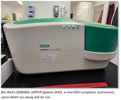 | 8) | バイオ・ラッド QX600Dx ddPCR システム(IUO)装置、臨床試験実施施設へ出荷:10月9日の週、最初の診断キットのリリースとBio-Rad QX600Dx ddPCR System (IUO)装置の社内への到着により、弊社は運営上の大きな節目を迎えました。ナッシュビルのラボは、新しい試薬や機器の到着で活気にあふれ、臨床現場での供給を強化するのに役立ちました。また、新しい科学者もチームに加わり、すぐに臨床準備の機運の高まりに貢献し始めた。 |