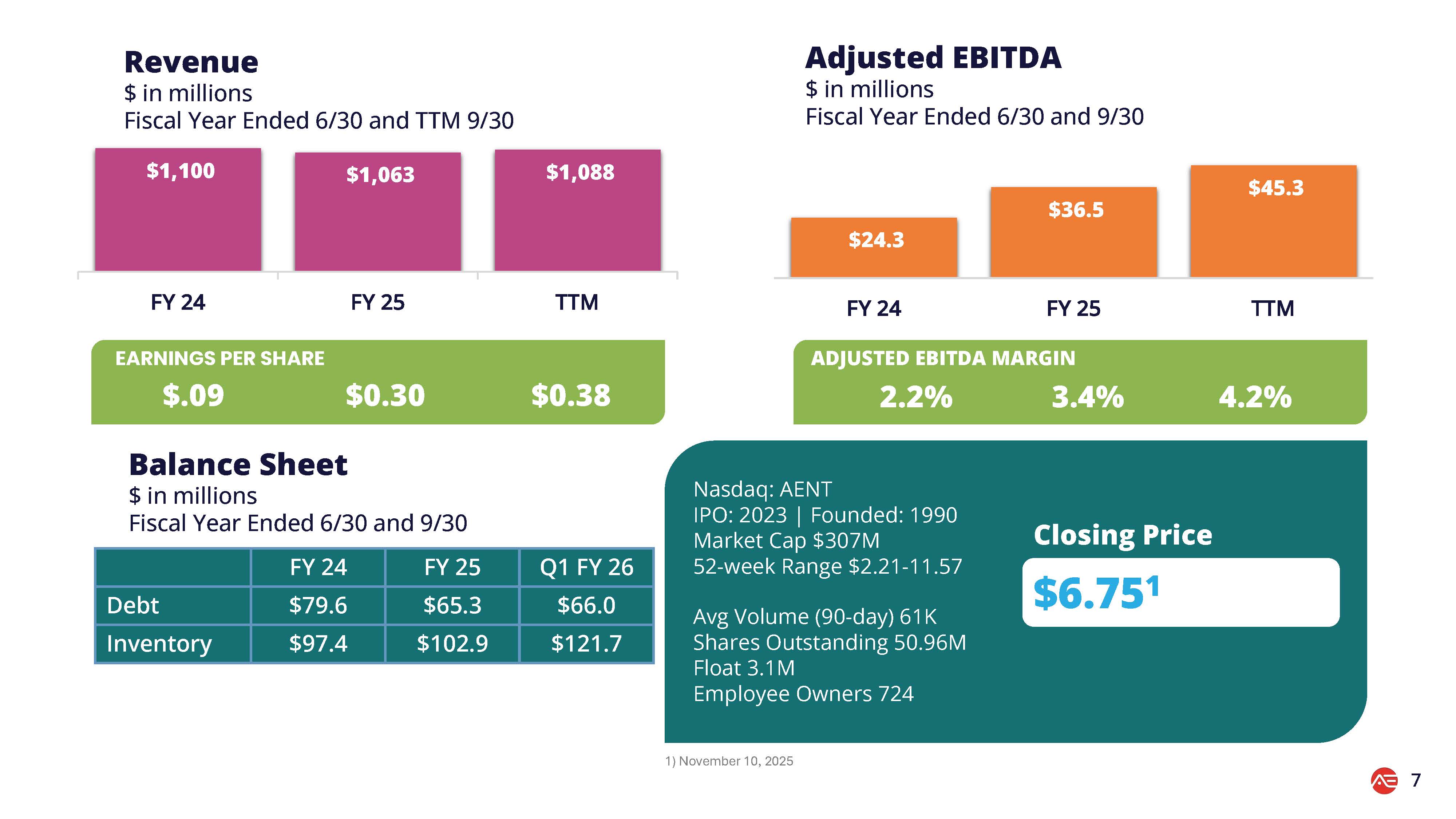 当社の投資家向けプレゼンテーションの最新版は、本フォーム 8-K の別紙 99.2 として添付されています。同プレゼンテーションは、ir.aent.comにある当社ウェブサイトの投資家向けセクションの「投資家向けプレゼンテーション」からオンラインでアクセスできます。当社ウェブサイト上の情報は、本Form 8-Kの一部ではありません。