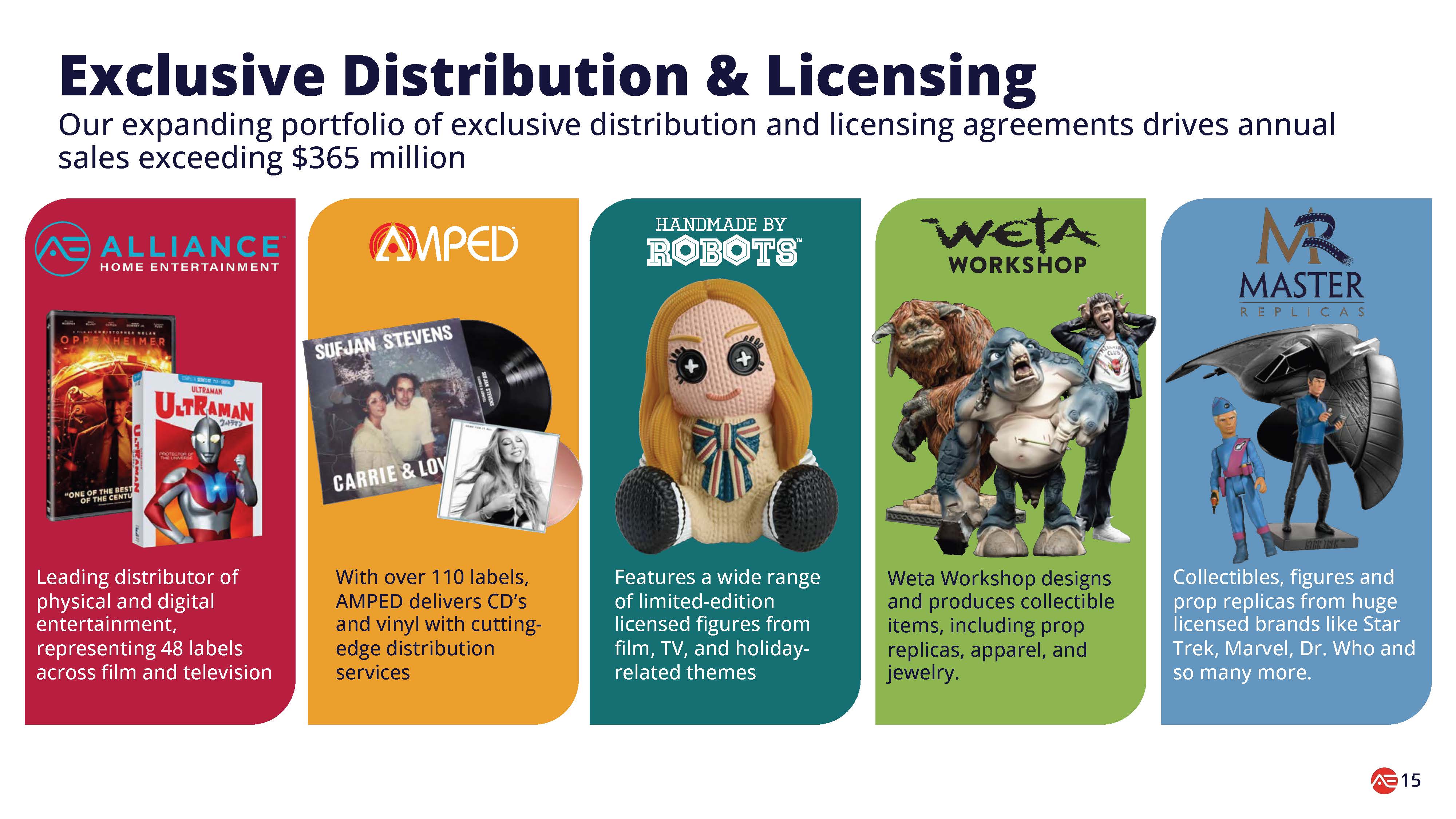 | ● | 収集品の成長とブランドの勢い:コレクティブルの売上は32%増の640万ドルで、自社ブランドHandmade by Robots™の小売展開の拡大と、主要フランチャイズにおける独占ライセンス商品の好調な販売に牽引された。Master Replicasレーベルの最近の発売は、スタートレック、デューン、ブレードランナーのプレミアムSFレプリカでポートフォリオをさらに強化した。 |