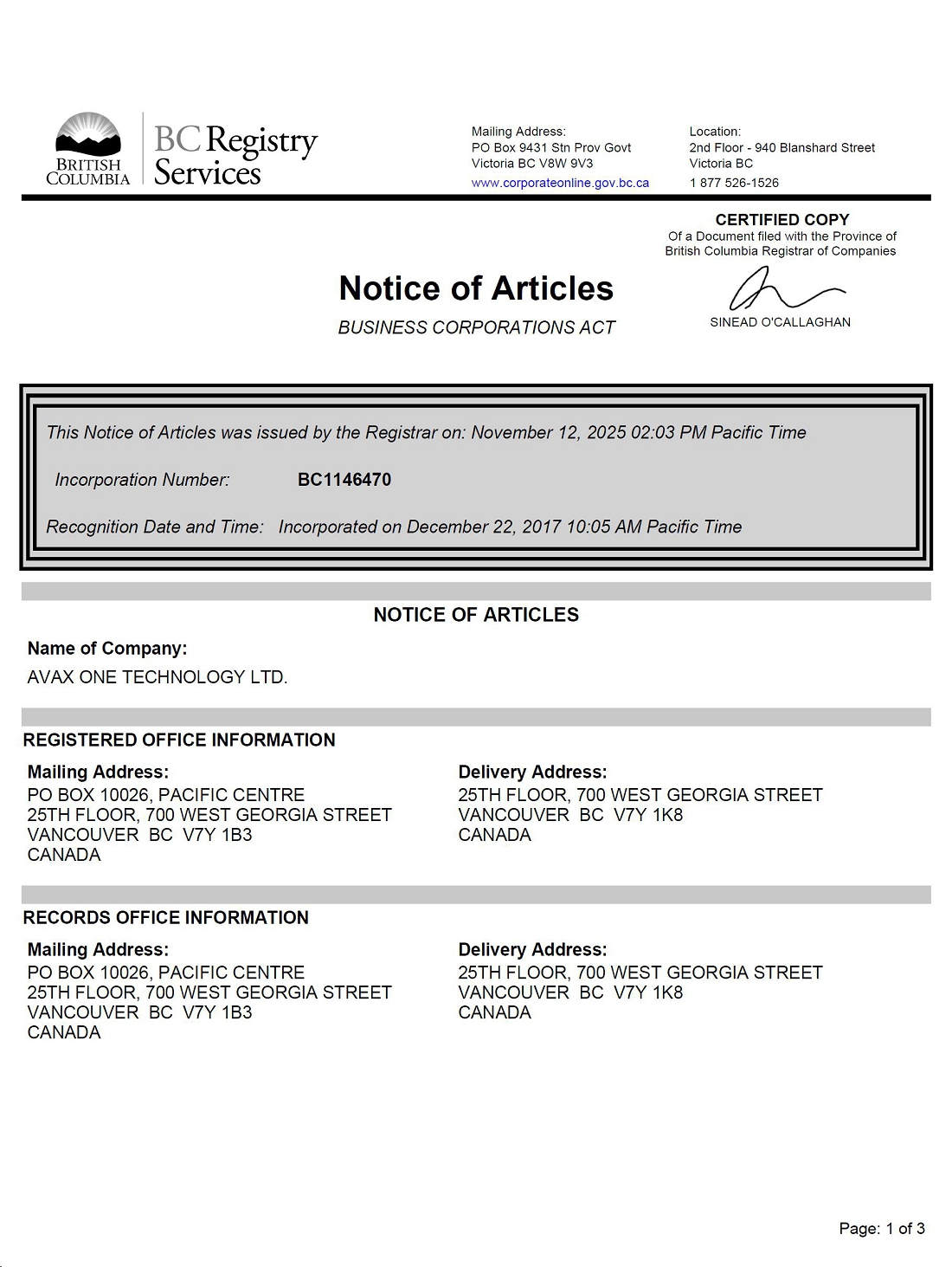 | AVAX ONE TECHNOLOGY LTD. | ||