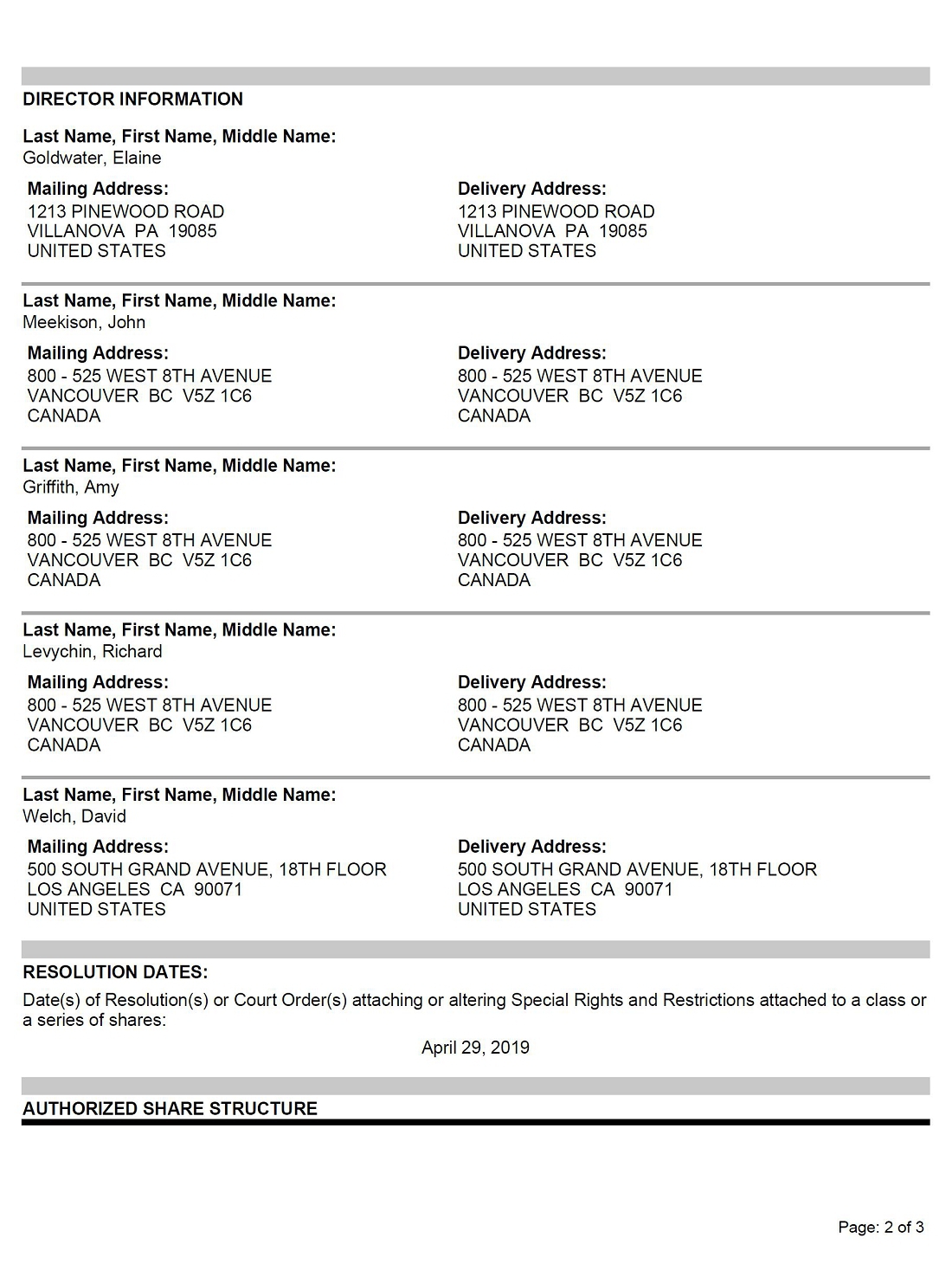 | British Columbia | A1 | 001-40578 | 00-0000000 NA | |