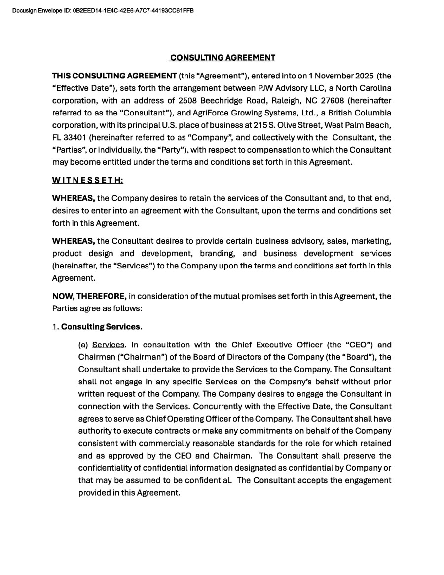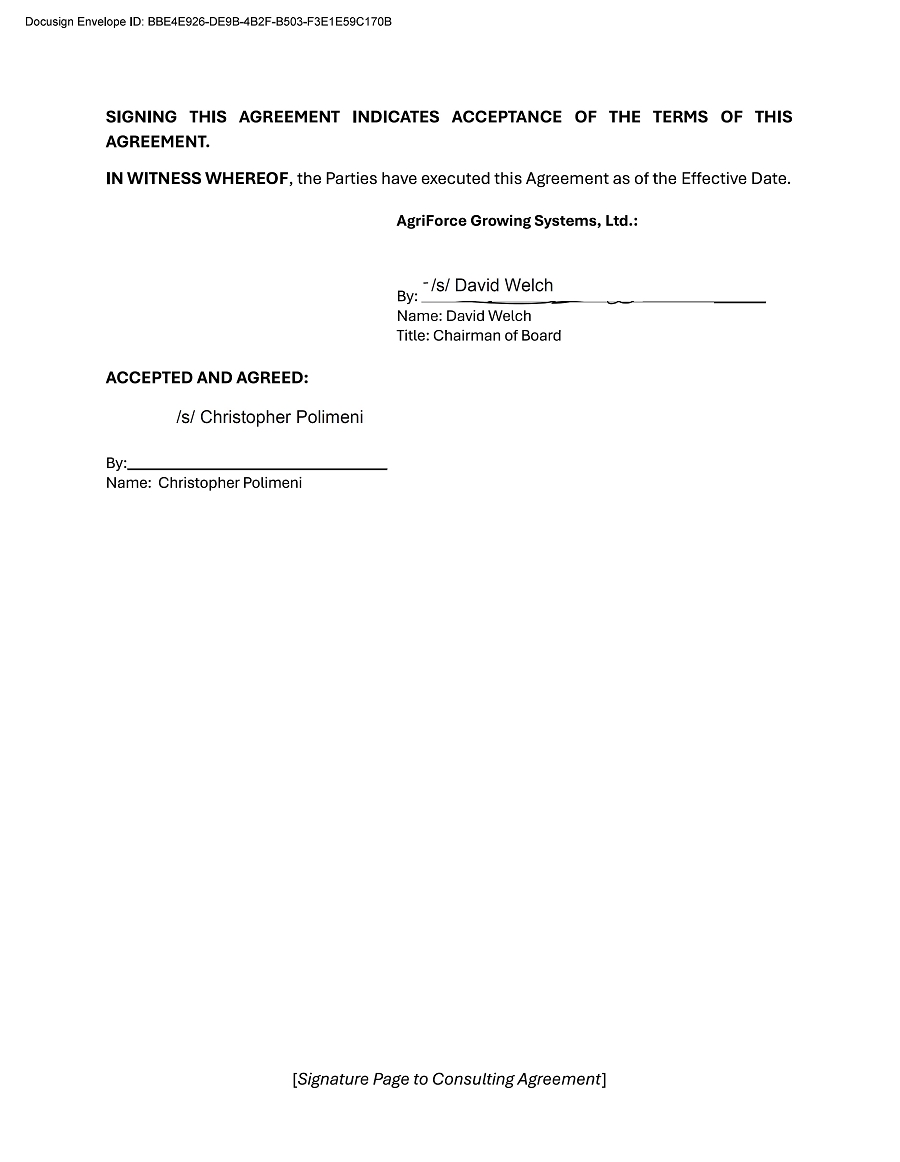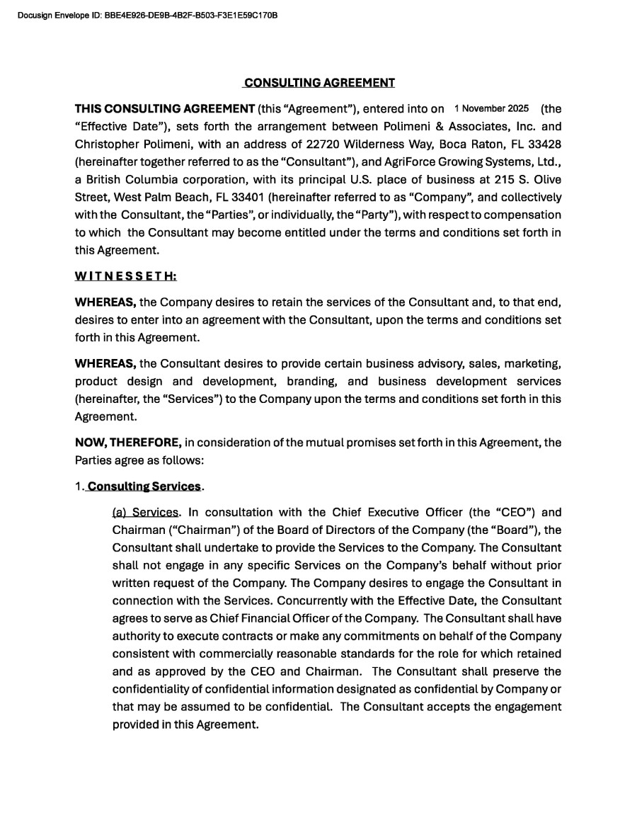 | 10.1 | Signed Consultancy Agreement - Chris Polimeni |