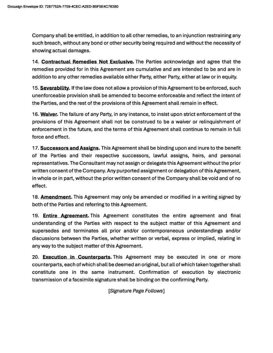 | Dated: November 14, 2025 | By: | /s/ Chris Polimeni |