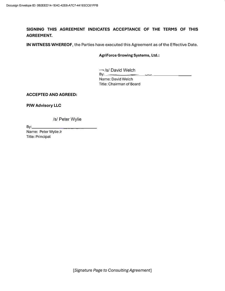 | 10.3 | Signed Consultancy Agreement - Peter Wylie |