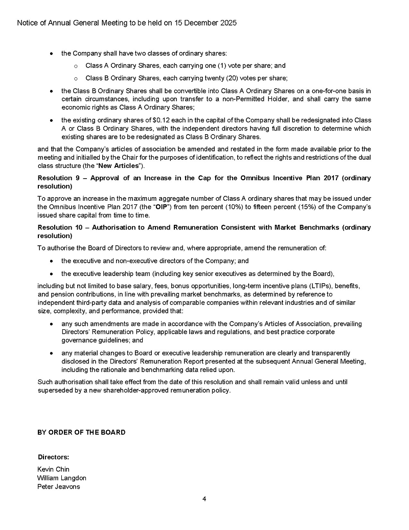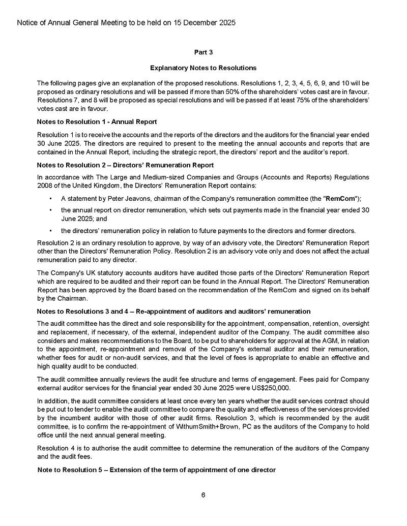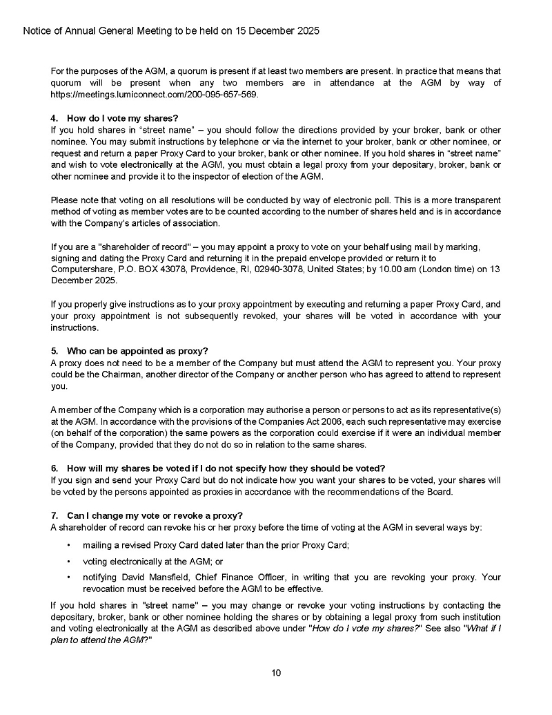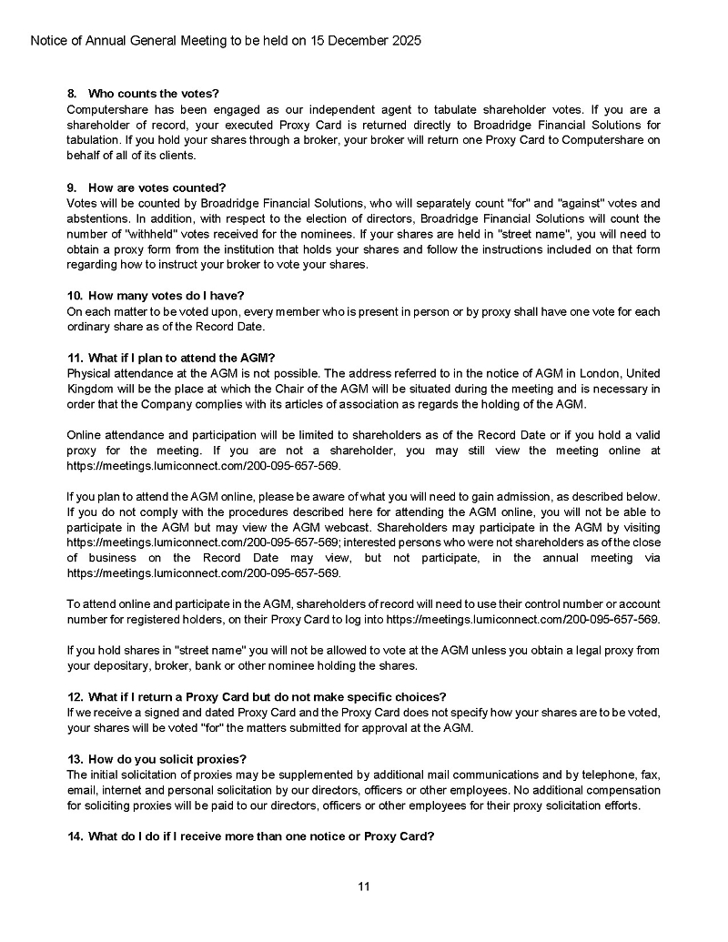 The formal notice of the AGM with accompanying proxy forms and dial-in details will be mailed to shareholders in accordance with the statutory period prior to the AGM and are also attached as exhibits.