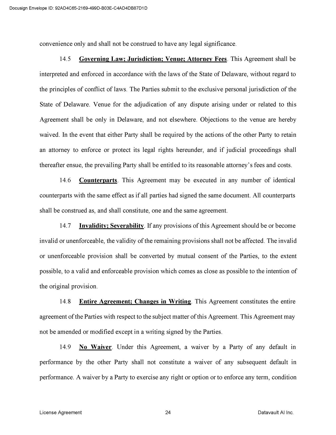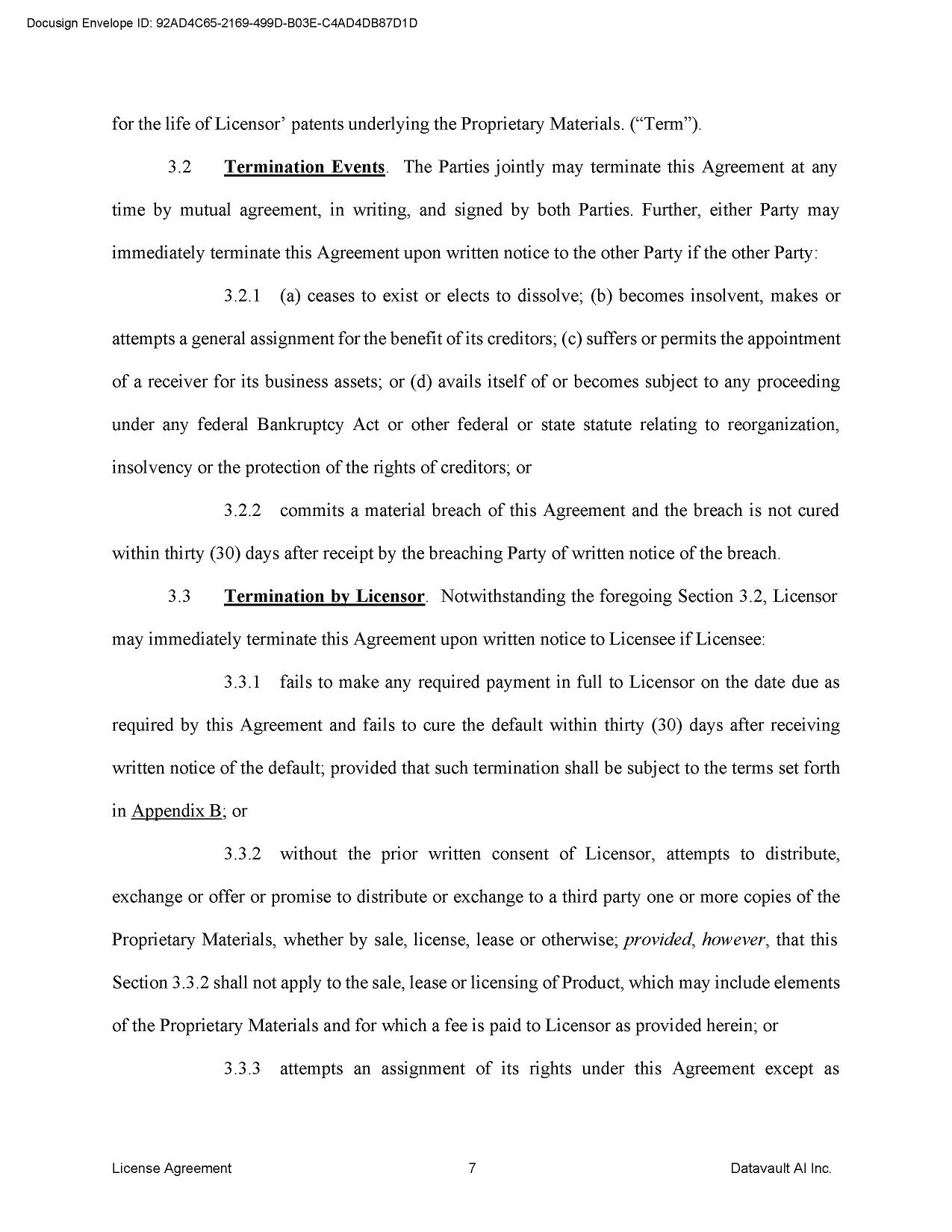 In exchange for the license, the Company shall pay DataVault a non-refundable license fee equal to Two Million Five Hundred Thousand Dollars ($2,500,000.00) to be paid by December 31, 2025.