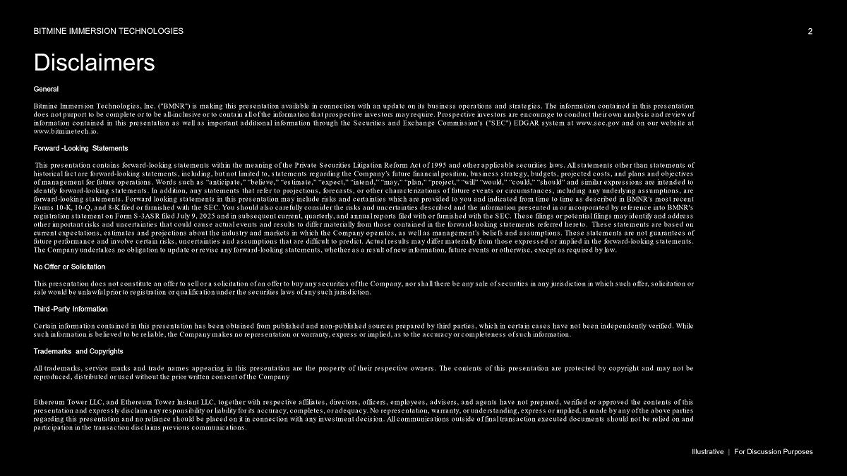 The Fiscal Full Year 2025 Earnings presentation and corporate presentation can be found here: https://bitminetech.io/investor-relations/