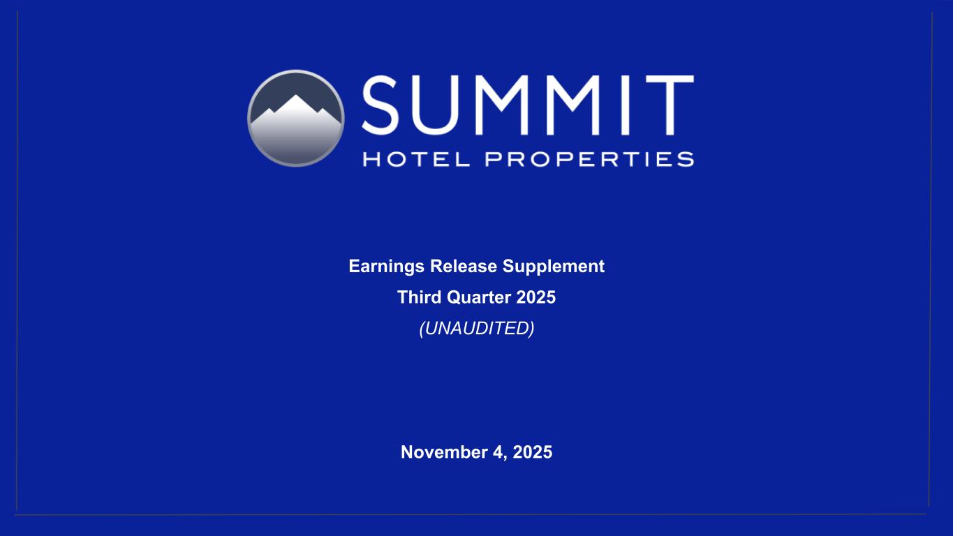 Austin, Texas, November 4, 2025 - - - Summit Hotel Properties, Inc. (NYSE: INN) (the “Company”), today announced results for the three and nine months ended September 30, 2025.
