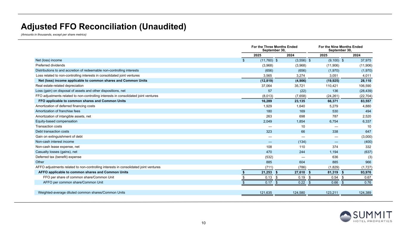 SUMMIT HOTEL PROPERTIES REPORTS THIRD QUARTER 2025 RESULTS