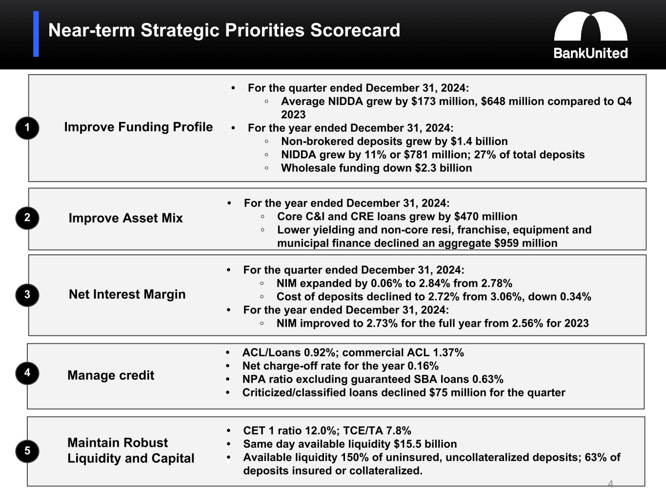 We continue to execute on strategic priorities focused on improving core profitability. EPS, the net interest margin, ROAA and ROAE have improved notably since the fourth quarter of 2023, as well as for the year ended December 31, 2024 compared to the year ended December 31, 2023.