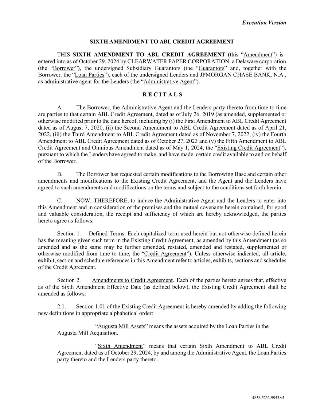 Clearwater Paper Corporation as Borrower