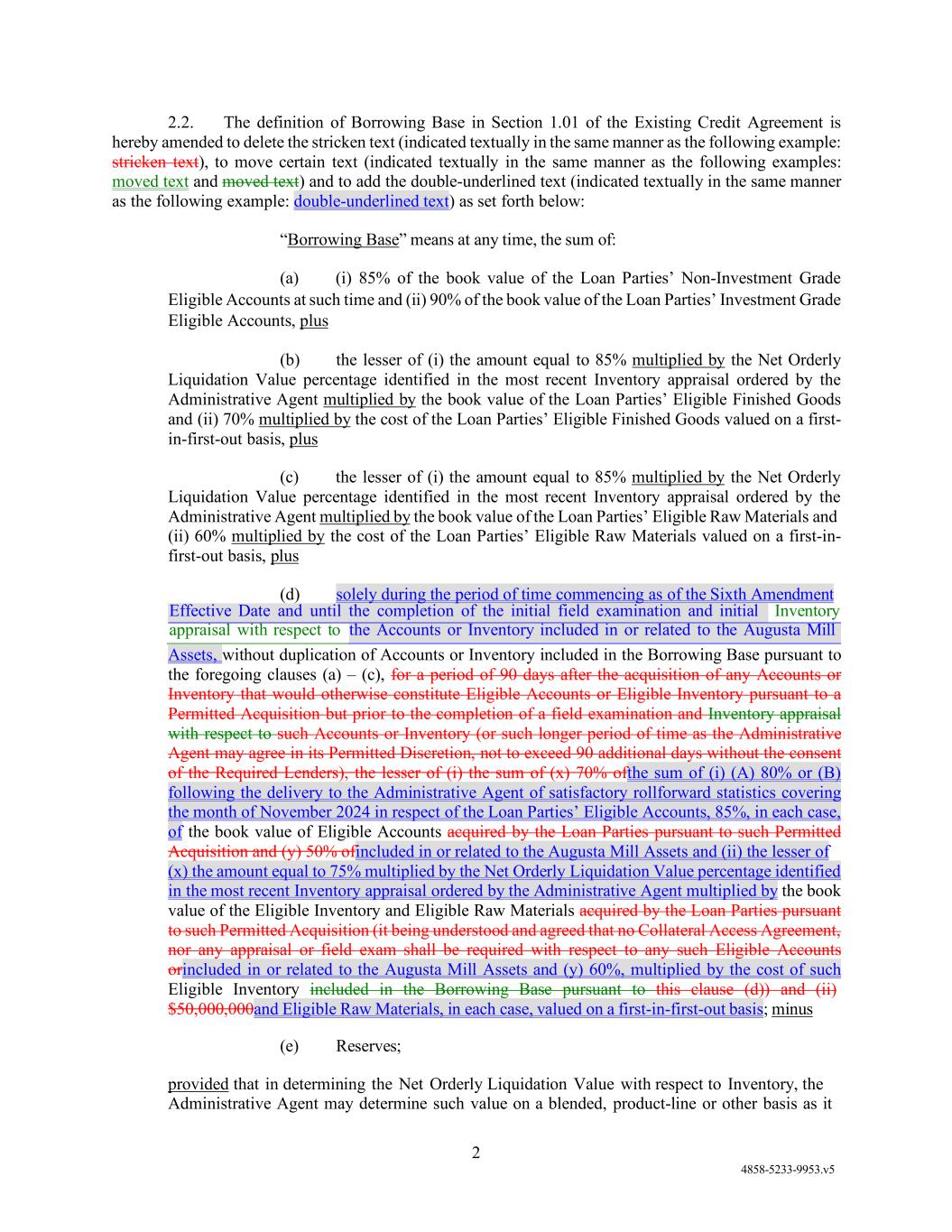 (a) The Existing Credit Agreement is hereby amended to delete the stricken text (indicated textually in the same manner as the following example: ), to move certain text (indicated textually in the same manner as the following examples: moved text and ) and to add the double-underlined text (indicated textually in the same manner as the following example: double-underlined text) as set forth in Annex A attached hereto.