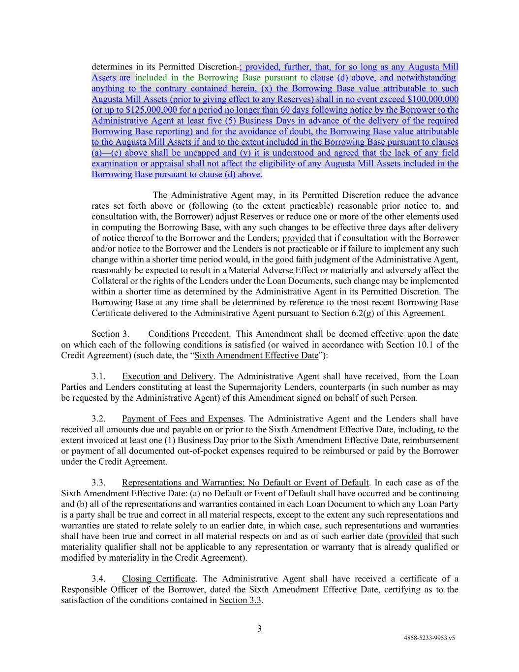 3. Conditions Precedent to the Effectiveness of this Amendment. The provisions of Section 2 of this Amendment are conditioned upon, and such provisions shall not be effective until, satisfaction of the following conditions (the first date on which all of the following conditions have been satisfied being referred to herein as the “Amendment Effective Date”):