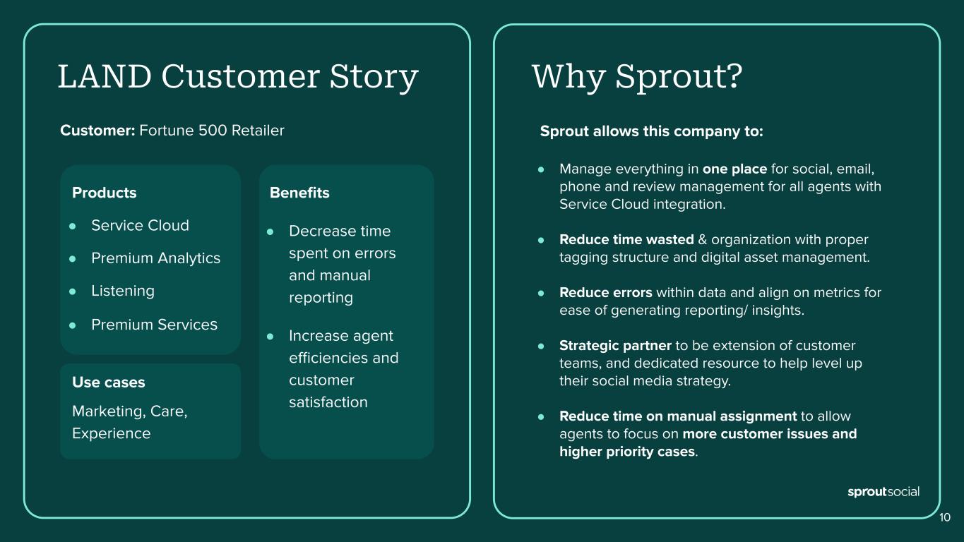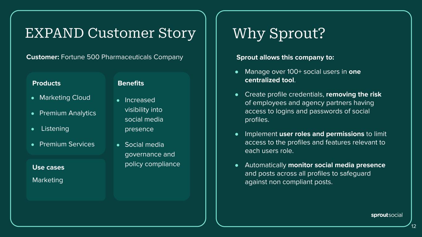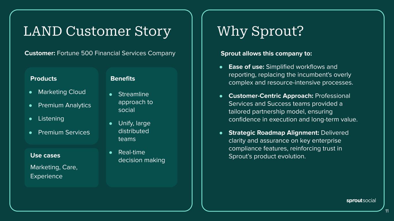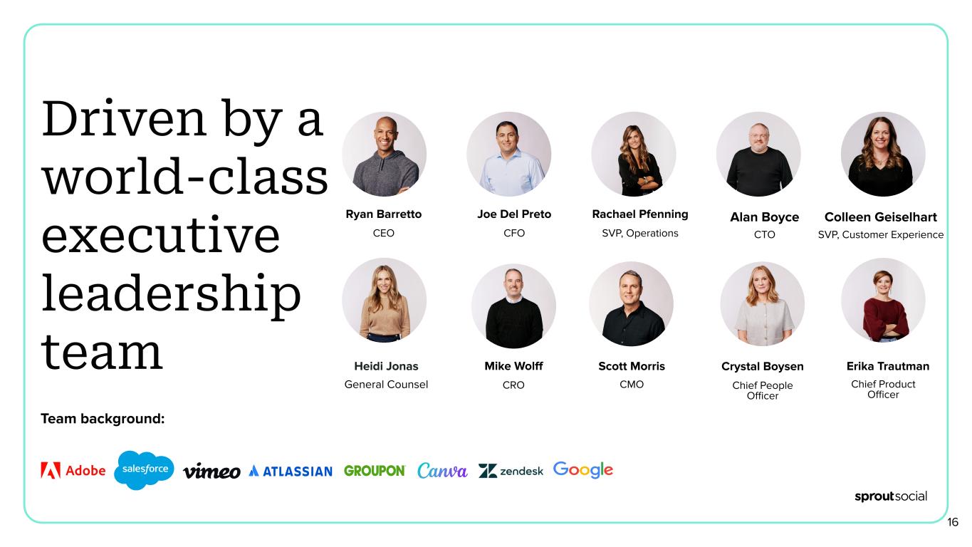 Following completion of the events, a webcast replay will also be available at http://investors.sproutsocial.com for 12 months. About Sprout Social Sprout Social is a global leader in social media management and analytics software. Sprout’s unified platform puts powerful social data into the hands of approximately 30,000 brands so they can make strategic decisions that drive business growth and innovation. With a full suite of social media management solutions, Sprout offers comprehensive publishing and engagement functionality, customer care, connected workflows and AI-powered business intelligence. Sprout’s award-winning software operates across all major social media networks and digital platforms. For more information about Sprout Social (NASDAQ: SPT), visit sproutsocial.com. Forward-Looking Statements This press release contains “forward-looking statements” within the meaning of Section 27A of the Securities Act of 1933, as amended, and Section 21E of the Securities Exchange Act of 1934, as amended. In some cases, you can identify forward-looking statements by terms such as “anticipate,” “believe,” “can,” “continue,” “could,” “estimate,” “expect,” “explore,””future,” “intend,” “long-term model,” “may,” “medium to longer term goals,” “might” “outlook,” “plan,” “potential,” “predict,” “project,” “should,” “strategy,” “target,” “will,” “would,” or the negative of these terms, and similar expressions intended to identify forward-looking statements. However, not all forward-looking statements contain these identifying words. These statements may relate to our market size and growth strategy, our estimated and projected costs, margins, revenue, expenditures and customer and financial growth rates, our Q1 2025 and full year 2025 financial outlook, our plans and objectives for future operations, growth, initiatives or strategies. By their nature, these statements are subject to numerous uncertainties and risks, including factors beyond our control, that could cause actual results, performance or achievement to differ materially and adversely from those anticipated or implied in the forward-looking statements. These assumptions, uncertainties and risks include that, among others: we may not be able to sustain our revenue and customer growth rate in the future, including due to risks associated with our strategic focus on enterprise customers; price increases have and may continue to negatively impact demand for our products, customer acquisition and retention and reduce the total number of customers or customer additions; our business would be harmed by any significant interruptions, delays or outages in services from our platform, our API providers, or certain social media platforms; if we are unable to attract potential customers through unpaid channels, convert this traffic to free trials or convert free trials to paid subscriptions, our business and results of operations may be adversely affected; we may be unable to successfully enter new markets, manage our international expansion and comply with any applicable international laws and regulations; we may be unable to integrate acquired businesses or technologies successfully or achieve the expected benefits of such acquisitions and investments; unstable market and economic conditions, such as recession risks, effects of inflation, labor shortages, supply chain issues, high interest rates, and the impacts of current and potential future bank failures and impacts of ongoing overseas conflicts, have and could continue to adversely impact our business and that of our existing and prospective customers, which may result in reduced demand for our products; we may not be able to generate sufficient cash to service our indebtedness; covenants in our credit agreement may restrict our operations, and if we do not effectively manage our business to comply with these covenants, our financial condition could be adversely impacted; any cybersecurity-related attack, significant data breach or disruption of the information technology systems or networks on which we rely could negatively affect our business; changing regulations relating to privacy, information security and data protection could increase our costs, affect or limit how we collect and use personal information and harm our brand; and risks related to ongoing legal proceedings. Additional risks and uncertainties that could cause actual outcomes and results to differ materially from those contemplated by the forward-looking statements are included under the caption “Risk Factors” and elsewhere in our filings with the Securities and Exchange Commission (the “SEC”), including our Annual Report on Form 10-K for the year ended December 31, 2023 filed with the SEC on February 23, 2024 and our Annual Report on Form 10-K for the year ended December 31, 2024, to be filed with the SEC as well as any future reports that we file with the SEC. Moreover, you should interpret many of the risks identified in those reports as being heightened as a result of the current instability in market and economic conditions. Forward-looking statements speak only as of the date the statements are made and are based on information available to Sprout Social at the time those statements are made and/or management's good faith belief as of that time with respect to future events. Sprout Social assumes no obligation to update forward-looking statements to reflect events or circumstances after the date they were made, except as required by law. Use of Non-GAAP Financial Measures We have provided in this press release certain financial information that has not been prepared in accordance with generally accepted accounting principles in the United States (“GAAP”). Our management uses these non-GAAP financial measures internally in analyzing our financial results and believes that use of these non-GAAP financial