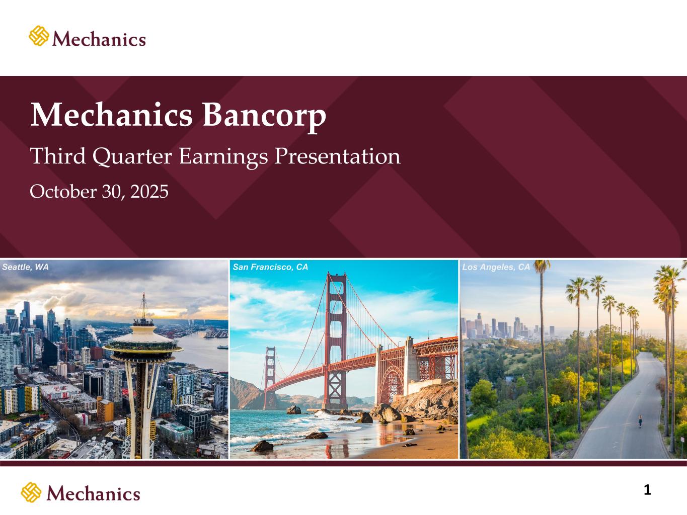 Mechanics Bancorp Third Quarter Earnings Presentation October 30, 2025 Seattle, WA San Francisco, CA Los Angeles, CA 1