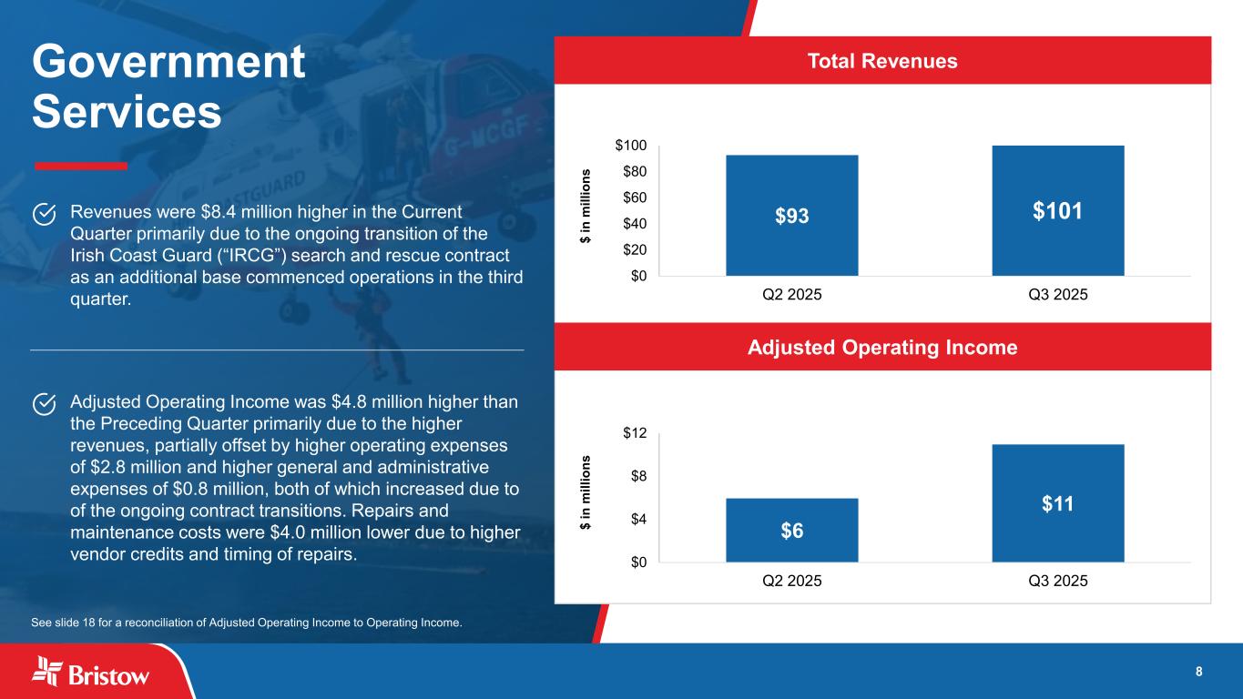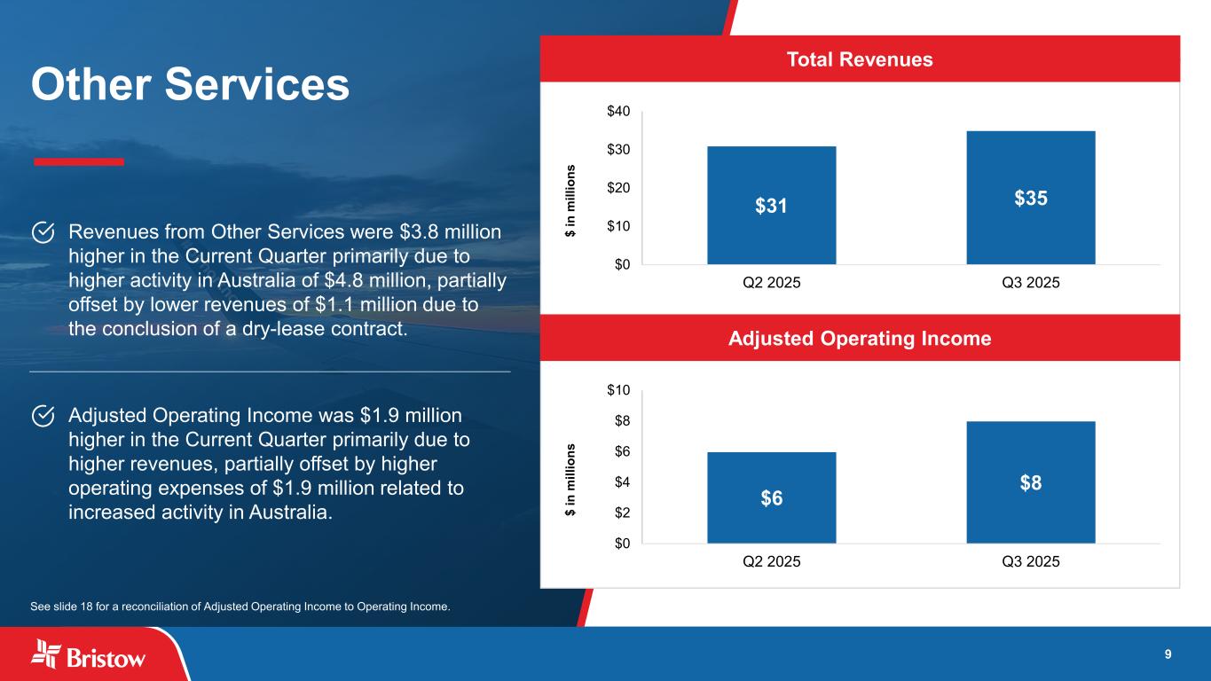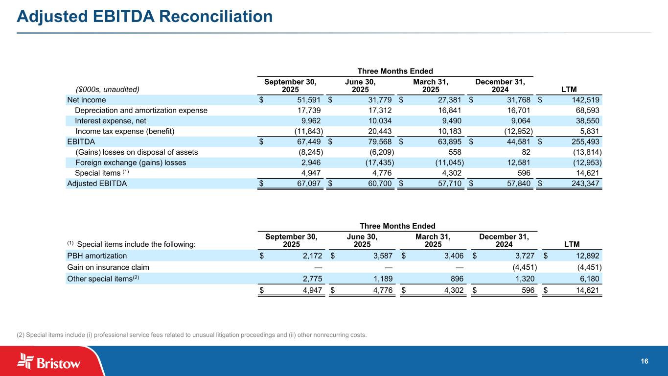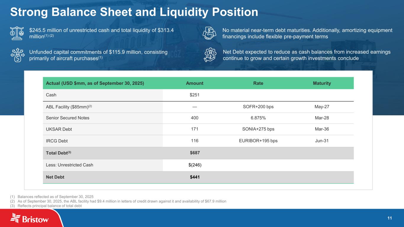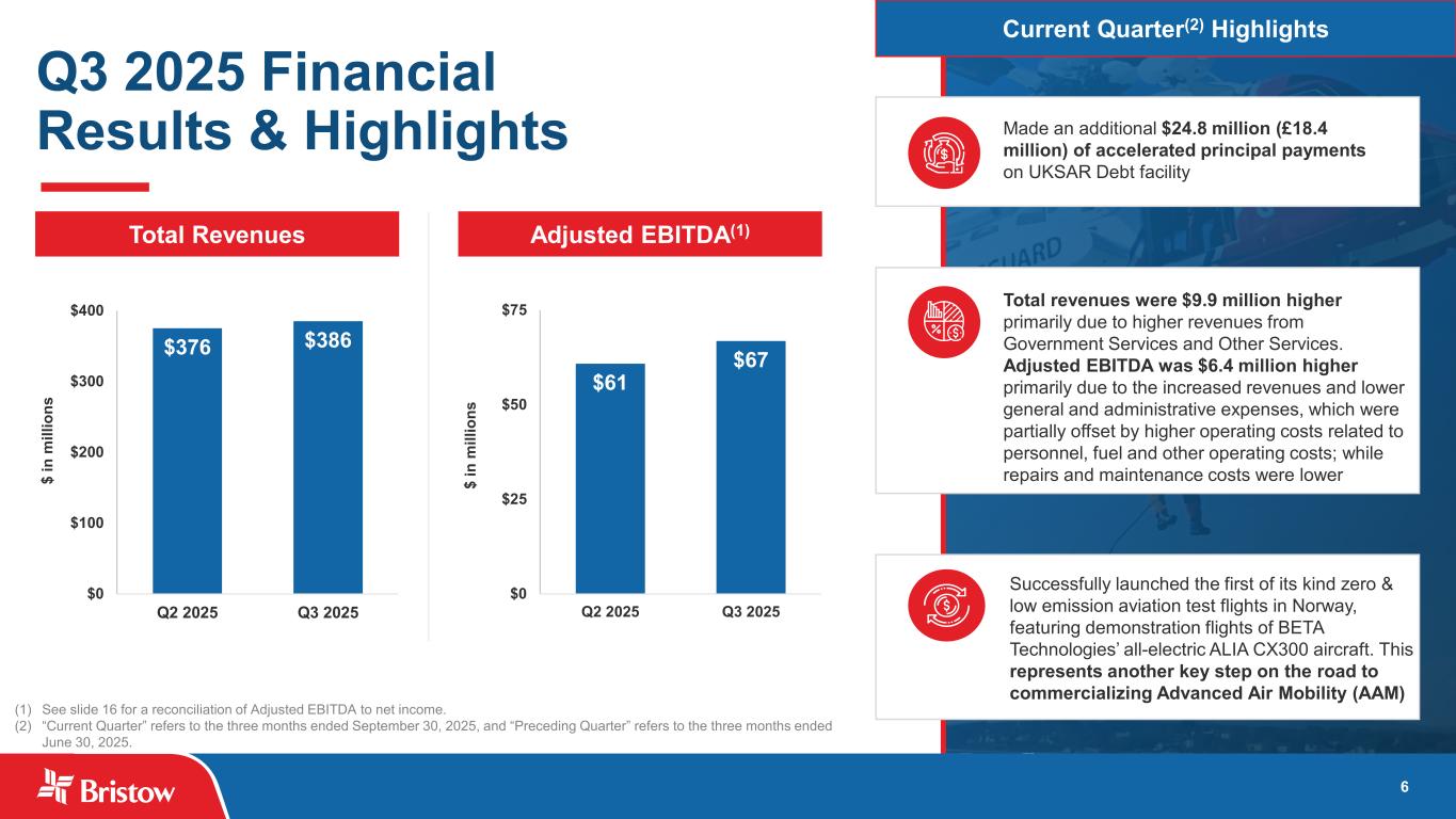 ブリストウ・グループ・インク(NYSE: VTOL)(以下「ブリストウ」または「当社」)は本日、2025 年 9 月 30 日に終了した四半期(以下「当四半期」)の当社株主に帰属する純利益が 5,150 万ドル、希薄化後 1 株当たり 1.72 ドルとなり、総収益は 3 億 8,600 万ドルとなりました。300万ドルの純利益(希薄化後1株当たり1.07ドル)を計上した。