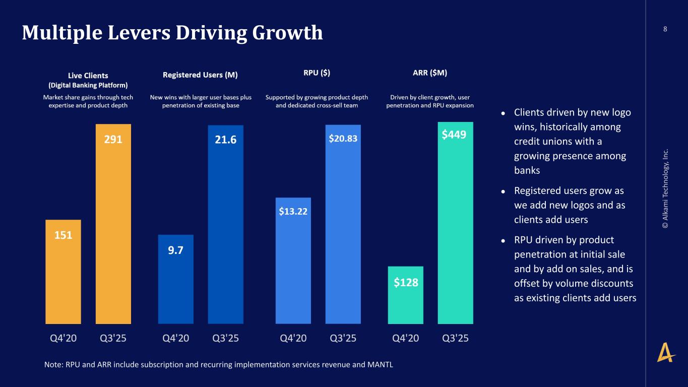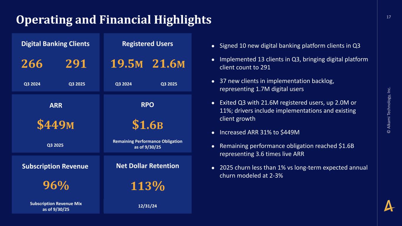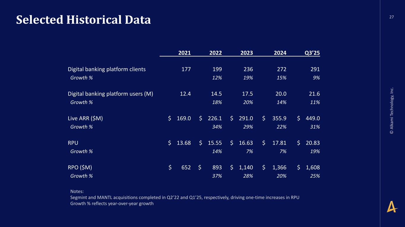 -2- as a compensated member of the board of directors of a third party of Executive’s choosing so long as such third party does not present a conflict of interest and Executive receives prior written consent of the CEO, with such consent not to be unreasonably withheld. 2. At-Will Employment. Subject to Sections 7, 8 and 9 below, the Company agrees to employ Executive, and Executive agrees to serve the Company, on an “at-will” basis, which means that either the Company or Executive may terminate Executive’s employment with the Company at any time and for any or no reason. 3. Compensation. (a) Base Salary. During the Employment Term, the Company will pay Executive as compensation for Executive’s services a base salary at a rate of no less than $460,000 per year, increased from time to time at the discretion of the Board (the “Base Salary”). The Base Salary will be paid in regular installments in accordance with the Company’s normal payroll practices (subject to required withholding). (b) Annual Bonus. Commencing with the 2025 bonus plan year, Executive will be eligible for a target annual bonus of up to seventy percent (70%) of the Base Salary in each calendar year during the Employment Term as such bonus amount will be determined by the Board based on Executive’s achievement of specified performance goals as determined by the Board; provided, however, that such bonus will be prorated, based on the Effective Date, for the first year of this Agreement. Any bonus pursuant to this Section 3(b) shall be paid to Executive between February 1 and March 15 of the calendar year following the calendar year in which such bonus applies. (c) Equity Awards. (i) Executive will be granted an equity award of Restricted Stock Units with a value of $6 million on the date of grant (the “Restricted Stock Unit Award”) under the Alkami Technology, Inc. 2021 Incentive Award Plan (including any subsequent or successor plans, the “LTIP”) with quarterly vesting. Executive may also receive additional awards of equity after this initial grant at the discretion of the Company (including the Restricted Stock Units, “Equity Awards”). (ii) The Restricted Stock Unit Award will vest in accordance with the terms of the equity award agreement evidencing such Restricted Stock Units. The Restricted Stock Unit Award agreement and any subsequent Equity Awards agreement evidencing any such Equity Awards granted to Executive by the Company in the future (each, the “Applicable Award Agreement”) shall provide for the accelerated vesting of all unvested equity if either (x) the Equity Awards are not assumed or continued or substituted (as such terms are used in the LTIP) for similar awards of at least equal value, in connection with a Change of Control (as defined below) or (y) the Equity Awards are assumed, continued or substituted for similar awards of at least equal value in connection with a Change of Control, and Executive’s employment is terminated without Cause (as defined below) by the Company or Executive resigns from Executive’s employment for Good Reason (as defined below), if such termination or resignation occurs either three (3) months prior to, on or within two years following, the date of such Change of Control (such twenty-seven month period being the “Protection Period”) and Executive delivers a release of claims in accordance with Section 9(b) below that becomes effective and irrevocable within 60 days following such termination or resignation. For avoidance of doubt, the provisions of this paragraph supersede and override any conflicting terms set forth in the LTIP, the Applicable Award Agreement or any other agreement evidencing an equity award.