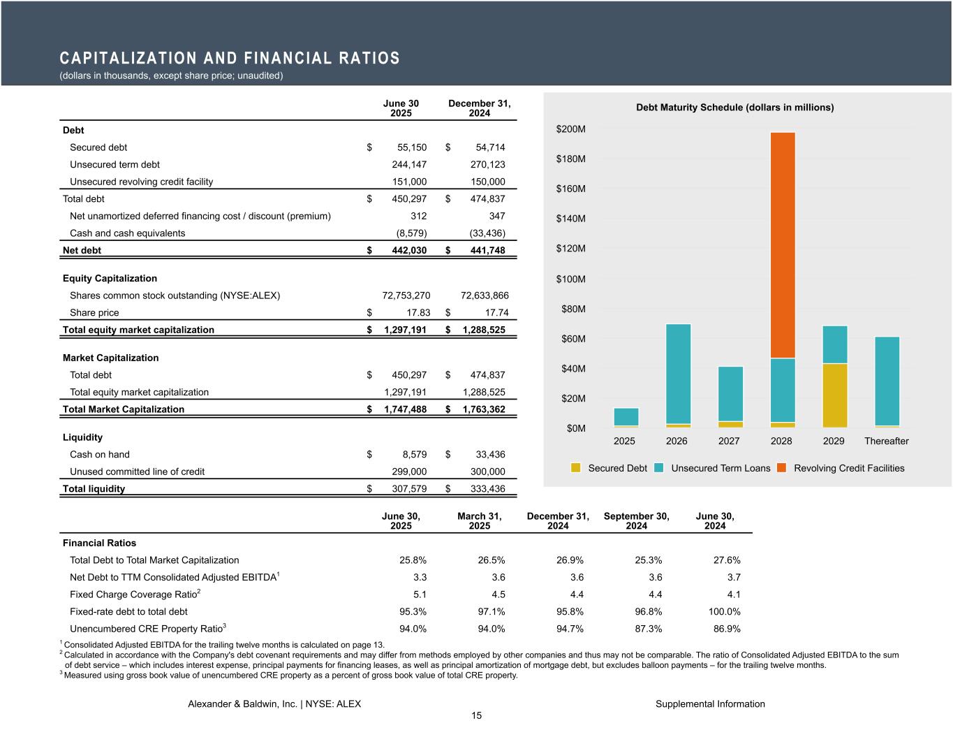 -2025年6月30日現在、純有利子負債/12ヵ月後(TTM)連結調整後EBITDAは3.3倍であり、2025年6月30日に終了した12ヵ月間のTTM連結調整後EBITDAは1億3,560万ドルであった。