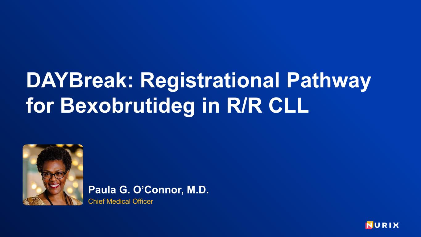 Paula G. O’Connor, M.D. Chief Medical Officer DAYBreak: Registrational Pathway for Bexobrutideg in R/R CLL