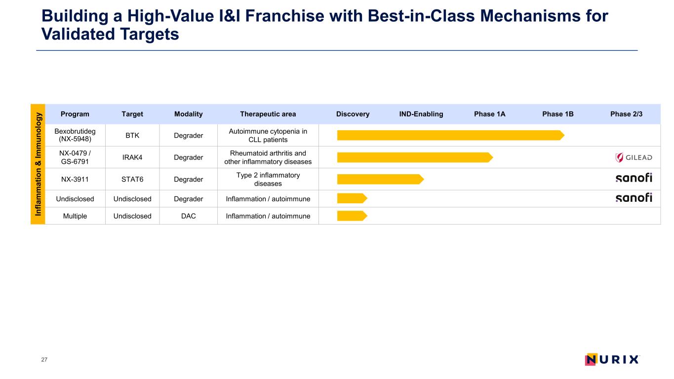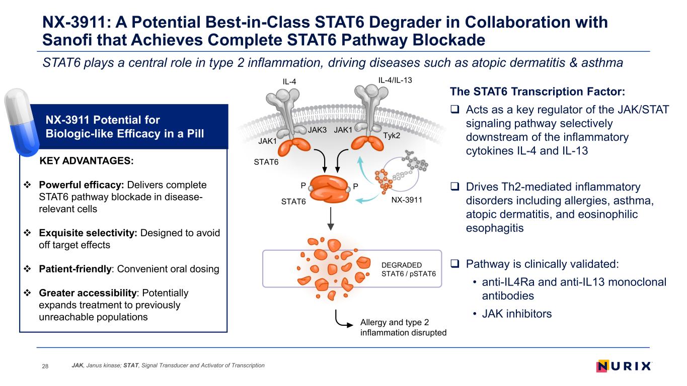 Building a High-Value I&I Franchise with Best-in-Class Mechanisms for Validated Targets 27 Program Target Modality Therapeutic area Discovery IND-Enabling Phase 1A Phase 1B Phase 2/3 Bexobrutideg (NX-5948) BTK Degrader Autoimmune cytopenia in CLL patients NX-0479 / GS-6791 IRAK4 Degrader Rheumatoid arthritis and other inflammatory diseases NX-3911 STAT6 Degrader Type 2 inflammatory diseases Undisclosed Undisclosed Degrader Inflammation / autoimmune Multiple Undisclosed DAC Inflammation / autoimmuneIn fla m m at io n & Im m un ol og y