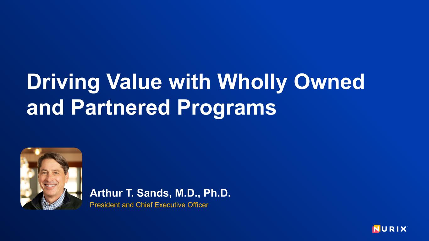 Arthur T. Sands, M.D., Ph.D. President and Chief Executive Officer Driving Value with Wholly Owned and Partnered Programs