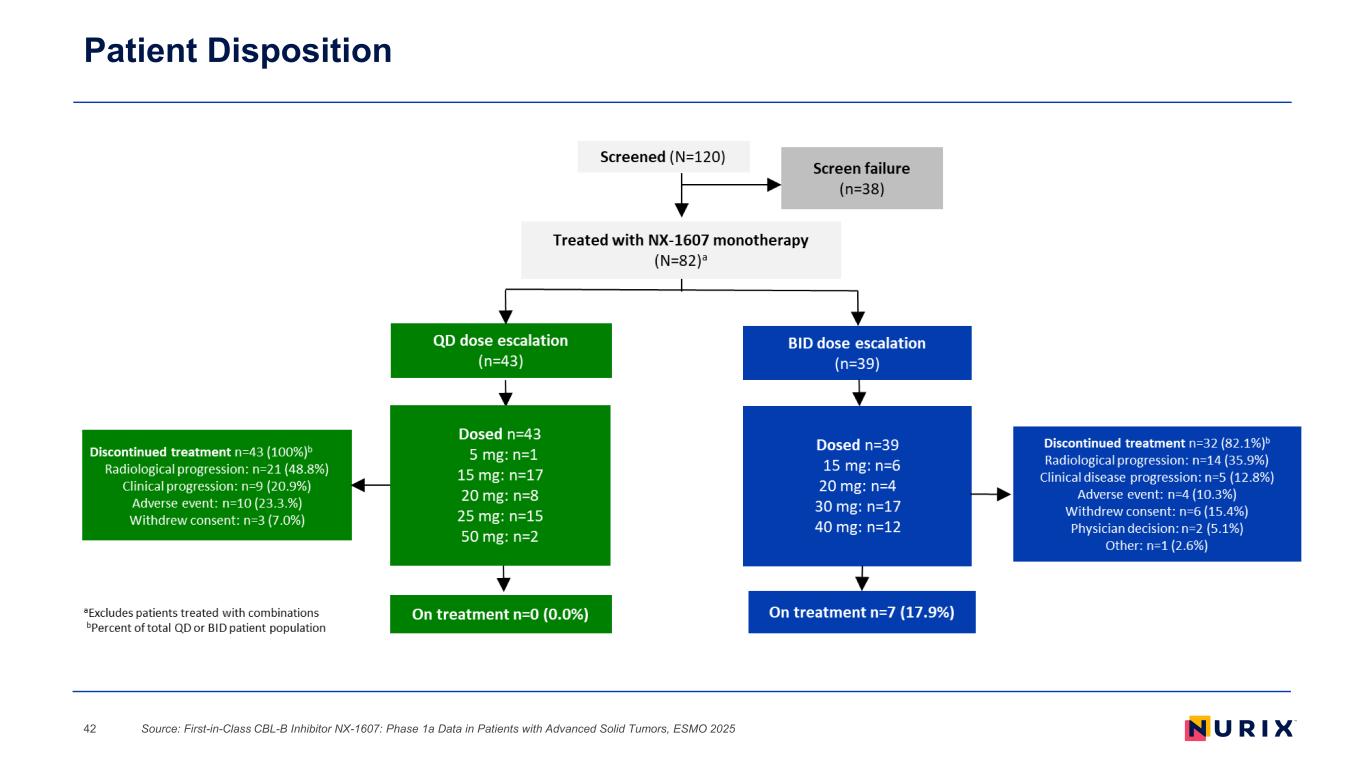 Patient Disposition Source: First-in-Class CBL-B Inhibitor NX-1607: Phase 1a Data in Patients with Advanced Solid Tumors, ESMO 202542