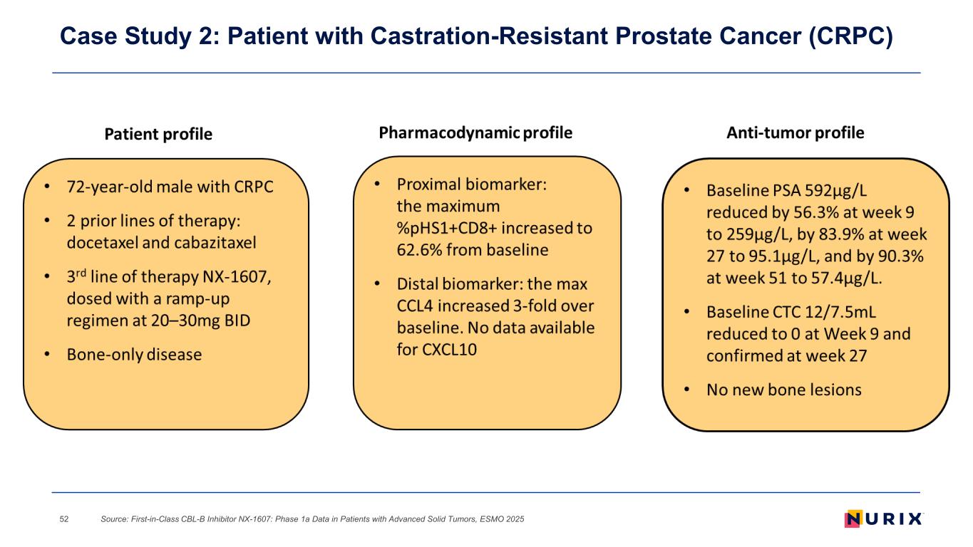 Case Study 2: Patient with Castration-Resistant Prostate Cancer (CRPC) Source: First-in-Class CBL-B Inhibitor NX-1607: Phase 1a Data in Patients with Advanced Solid Tumors, ESMO 202552