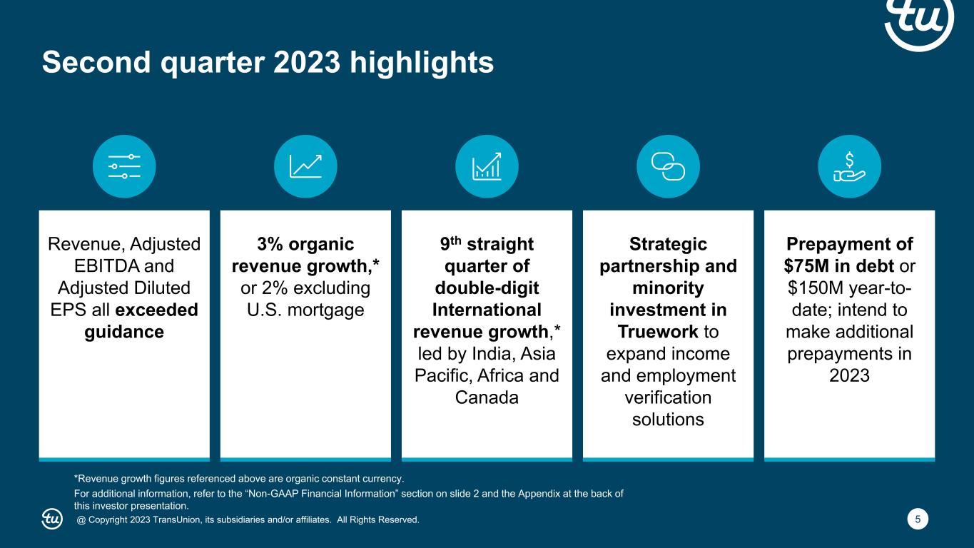 トランスユニオン(NYSE: TRU)(以下「当社」)は本日、2023 年 6 月 30 日に終了した四半期決算を発表しました。