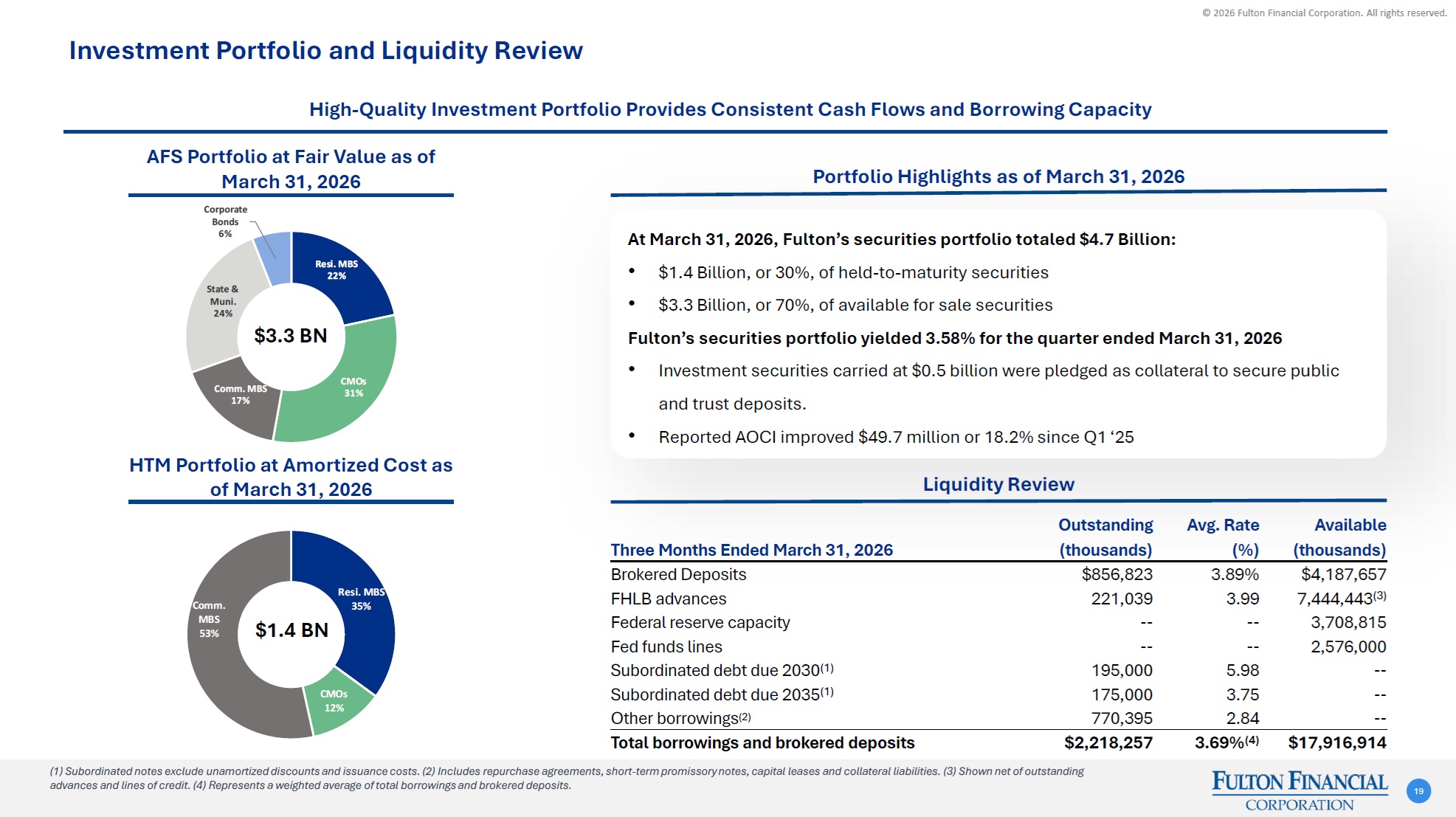 Fulton Financial Corporation © 2026 Fulton Financial Corporation. All rights reserved. Fixed Income Presentation Data as of or for the period ended March 31, 2026, unless otherwise noted