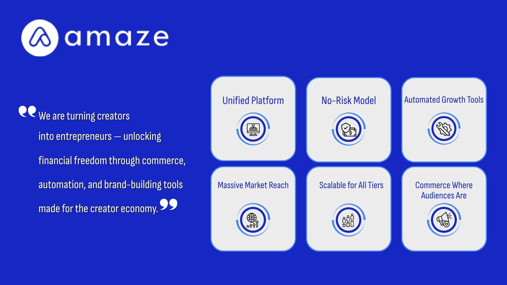 solutions, and scalable managed services. By empowering anyone to “sell anything, anywhere,” Amaze enables creators to tell