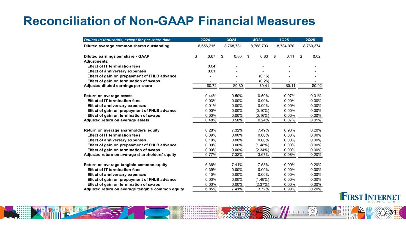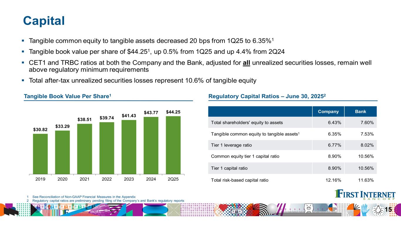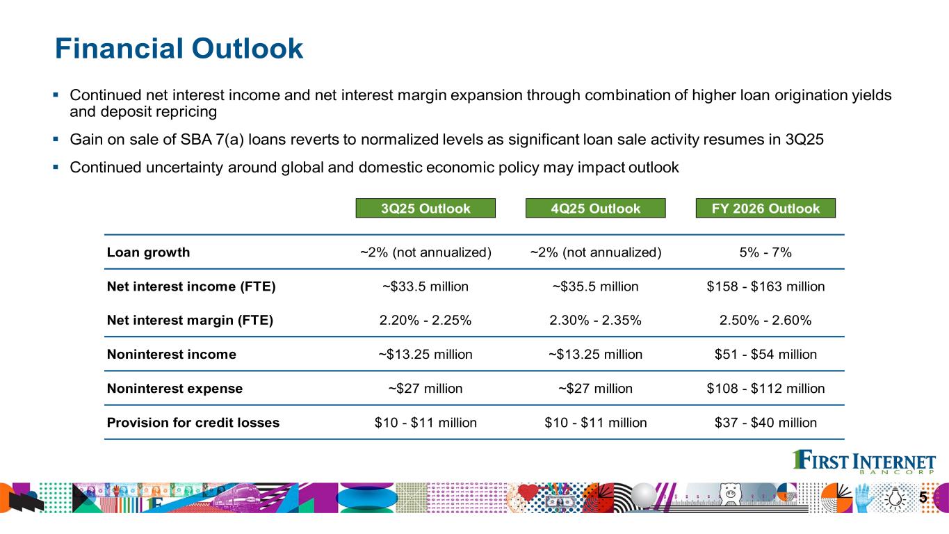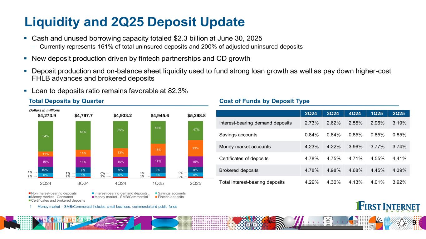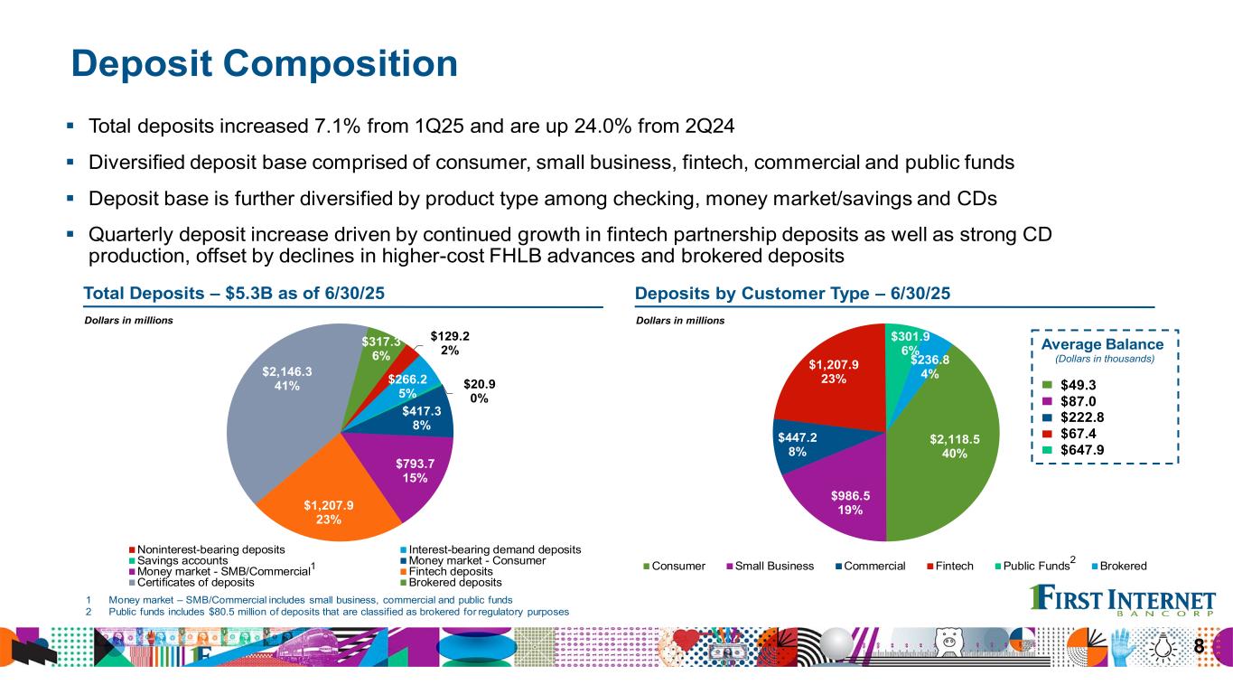 インディアナ州フィッシャーズ、2025年7月23日 - ファースト・インターネット銀行(以下「銀行」)の親会社であるファースト・インターネット・バンコープ(以下「当社」)(Nasdaq: INBK)は本日、2025年6月30日を期末とする第2四半期の財務および営業実績を発表した。