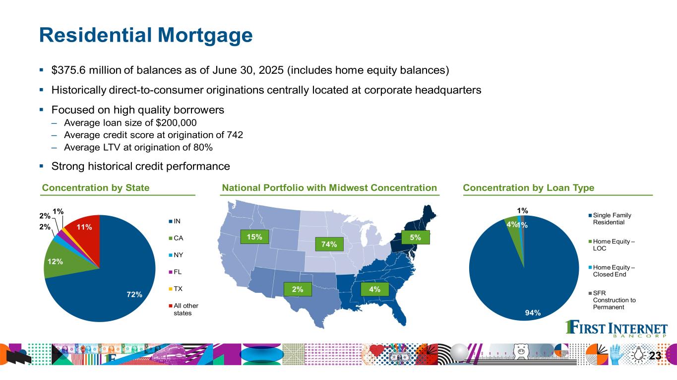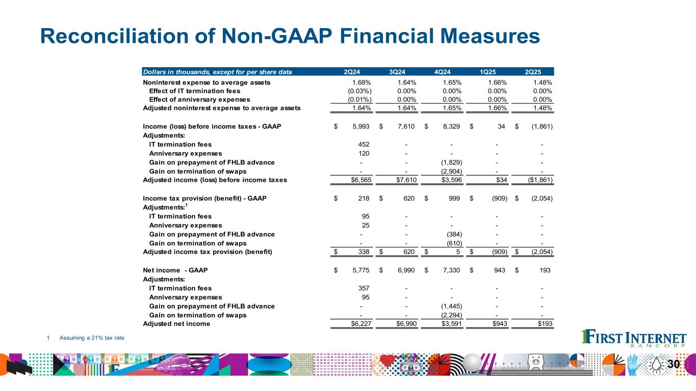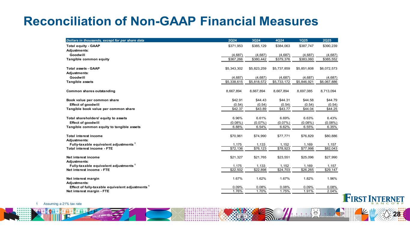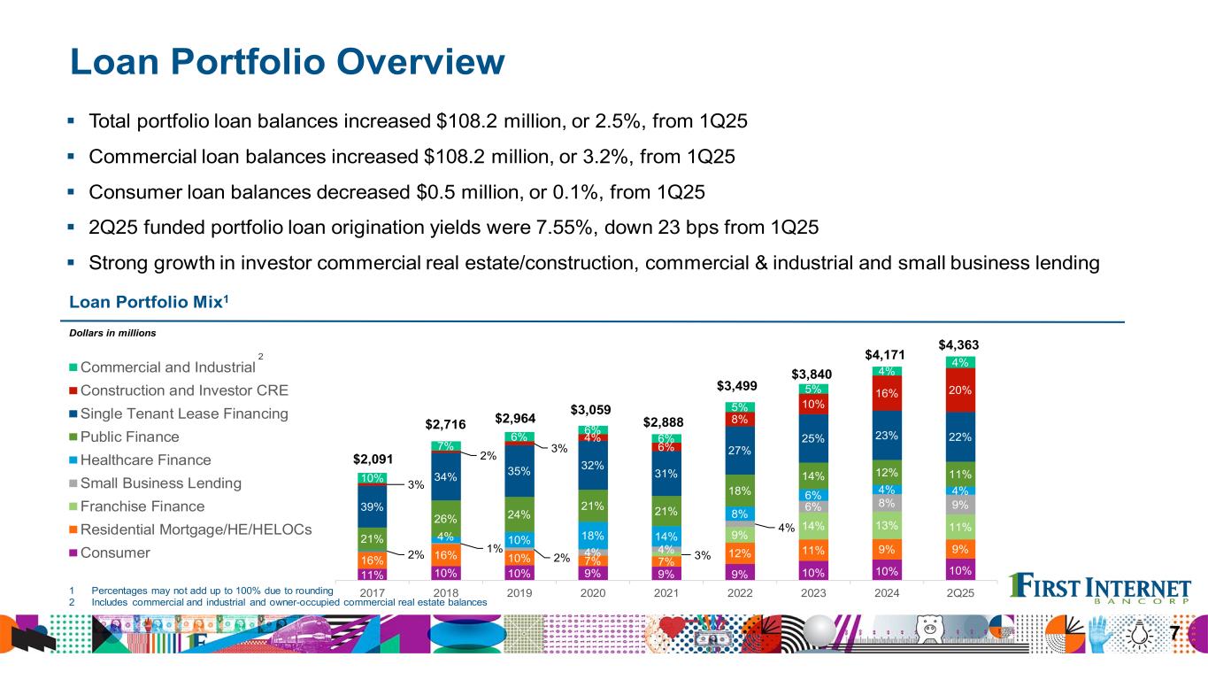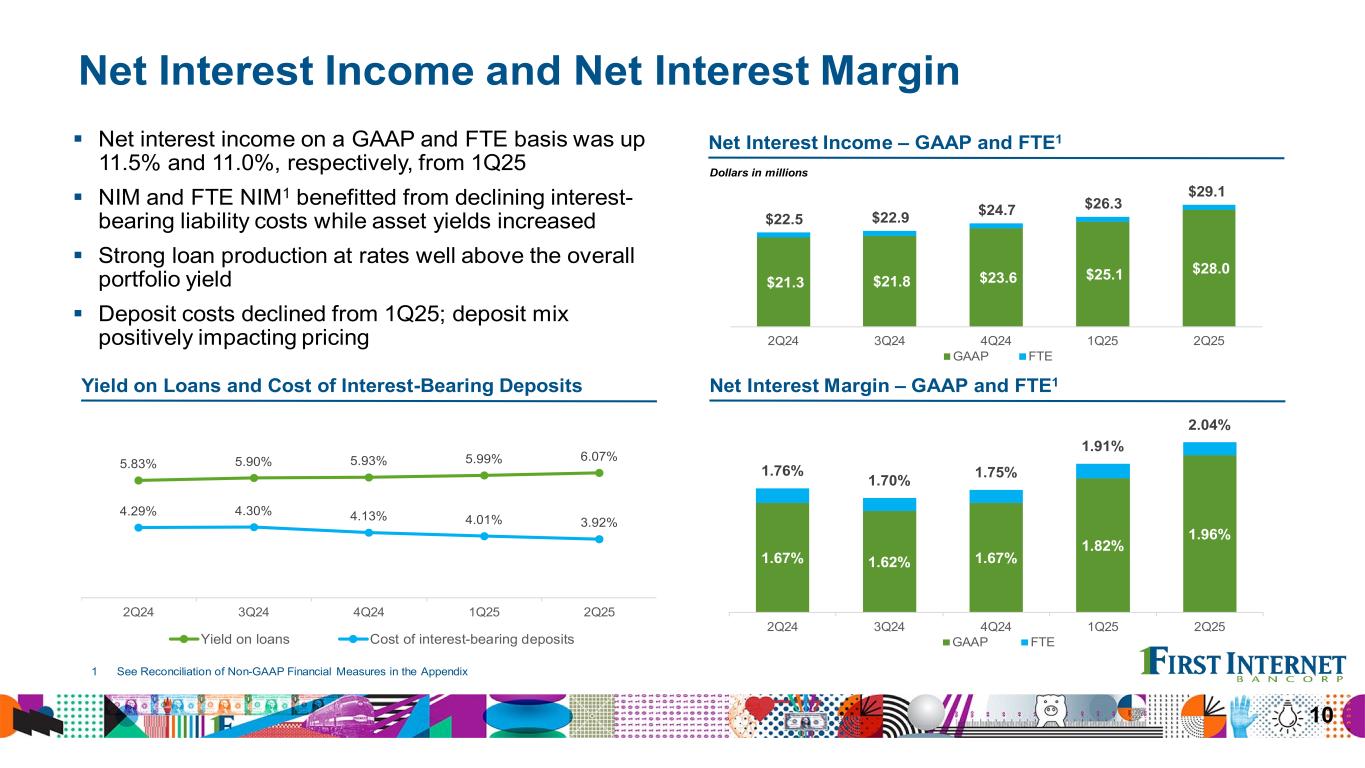 インディアナ州フィッシャーズ、2025年7月23日 - ファースト・インターネット銀行(以下「銀行」)の親会社であるファースト・インターネット・バンコープ(以下「当社」)(Nasdaq: INBK)は本日、2025年6月30日を期末とする第2四半期の財務および営業実績を発表した。