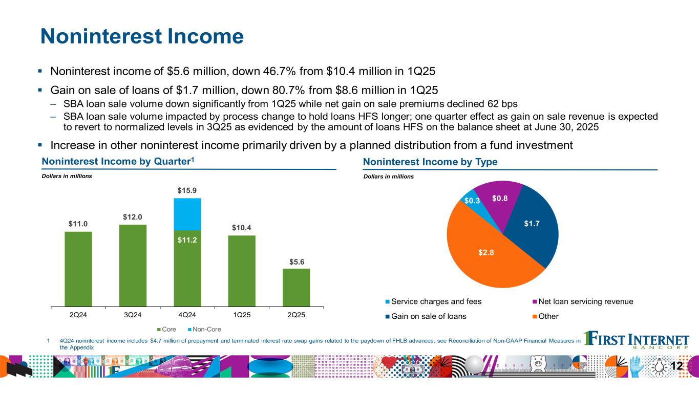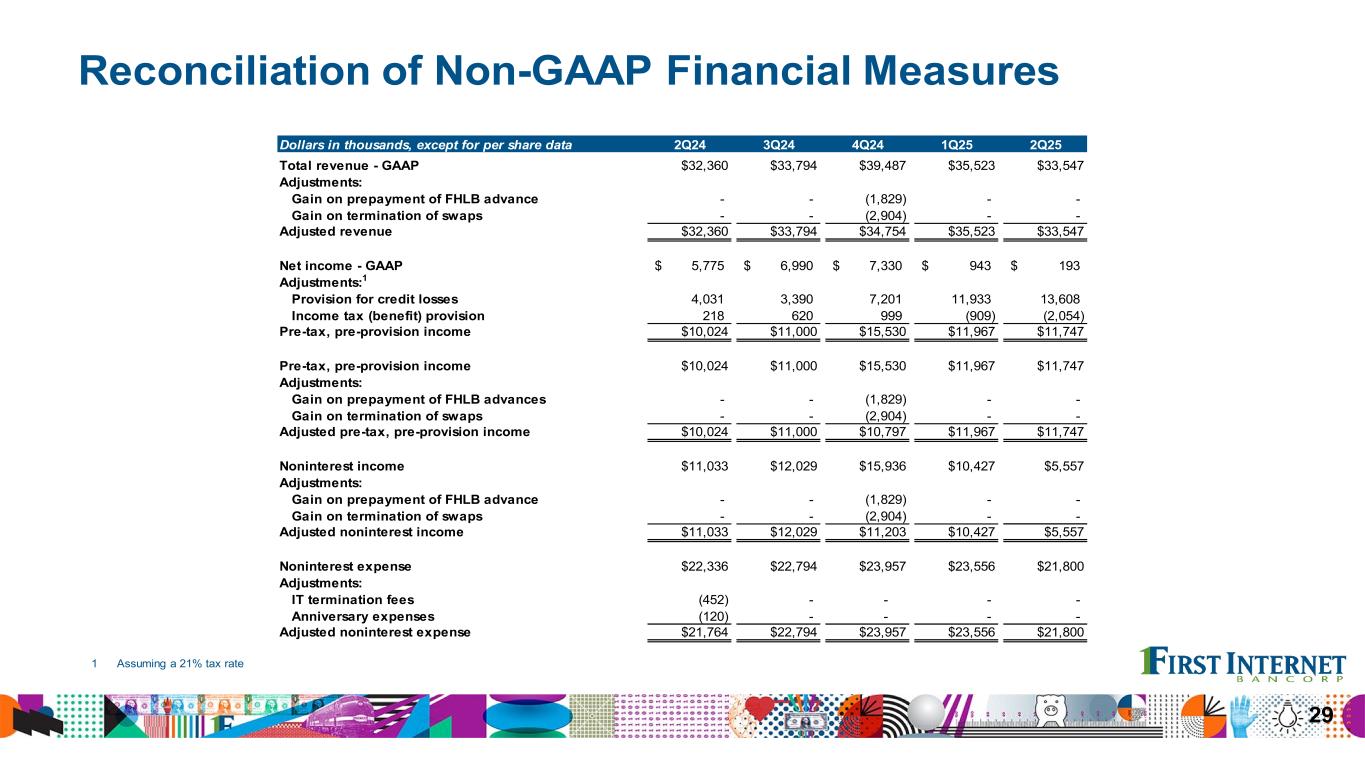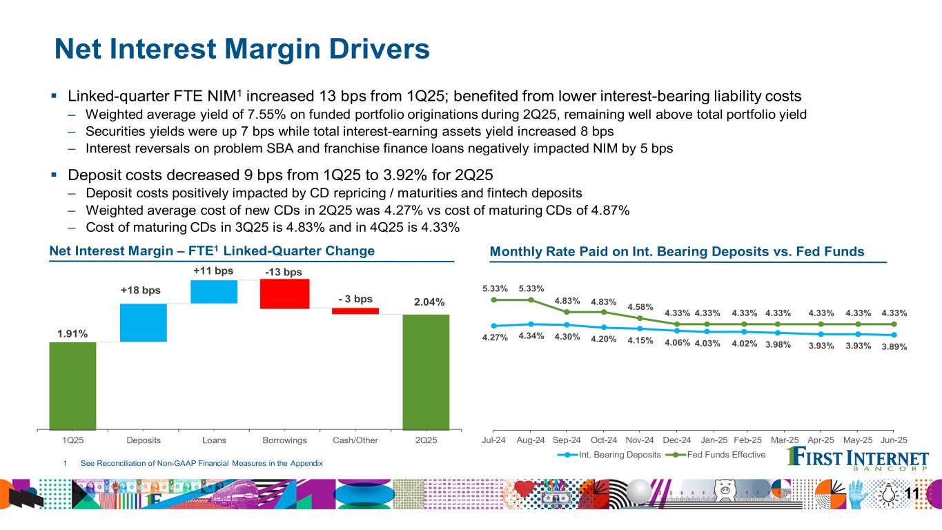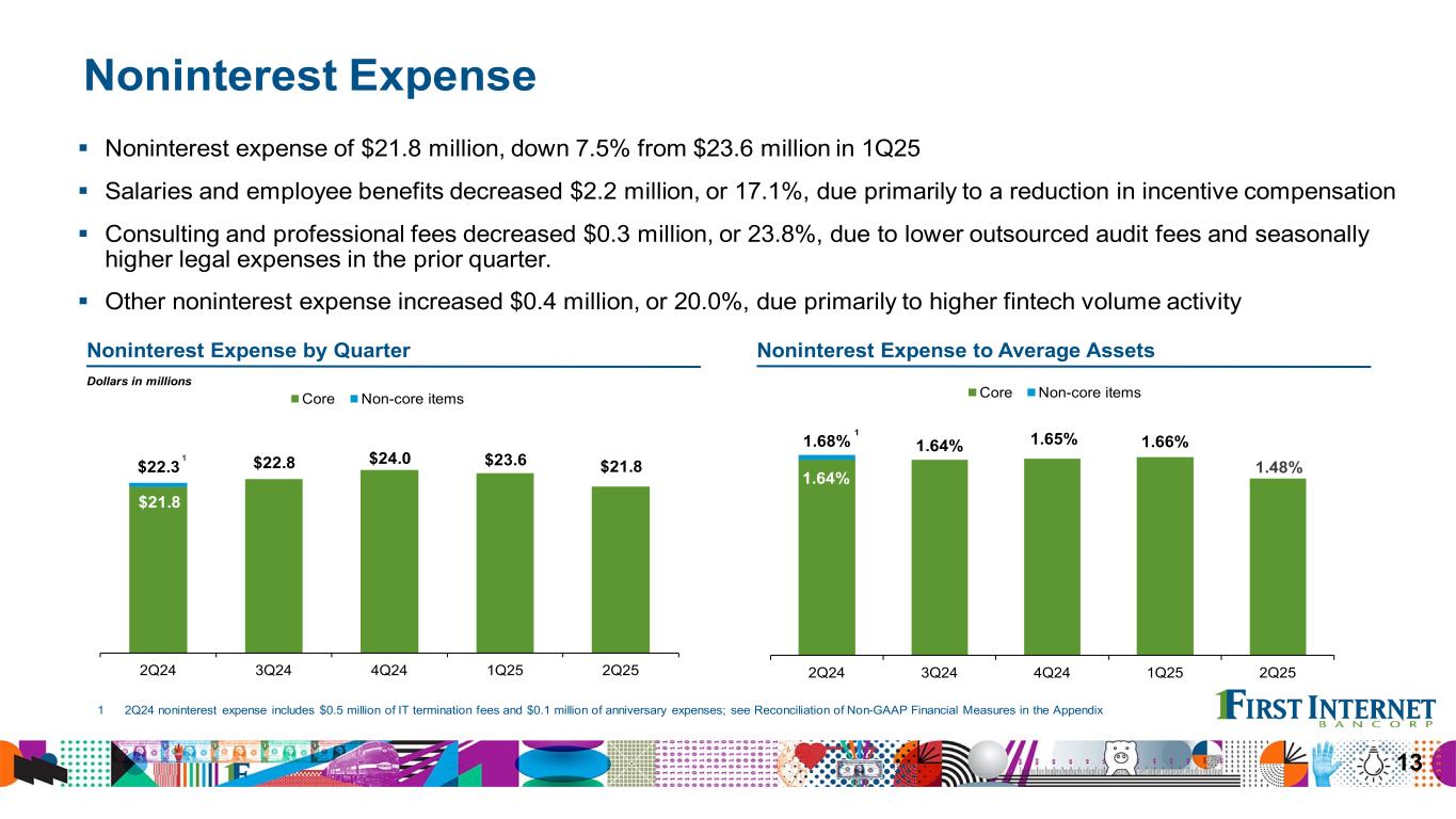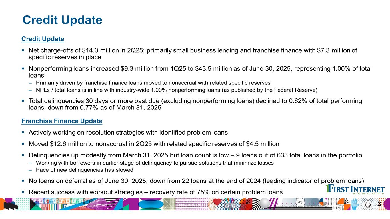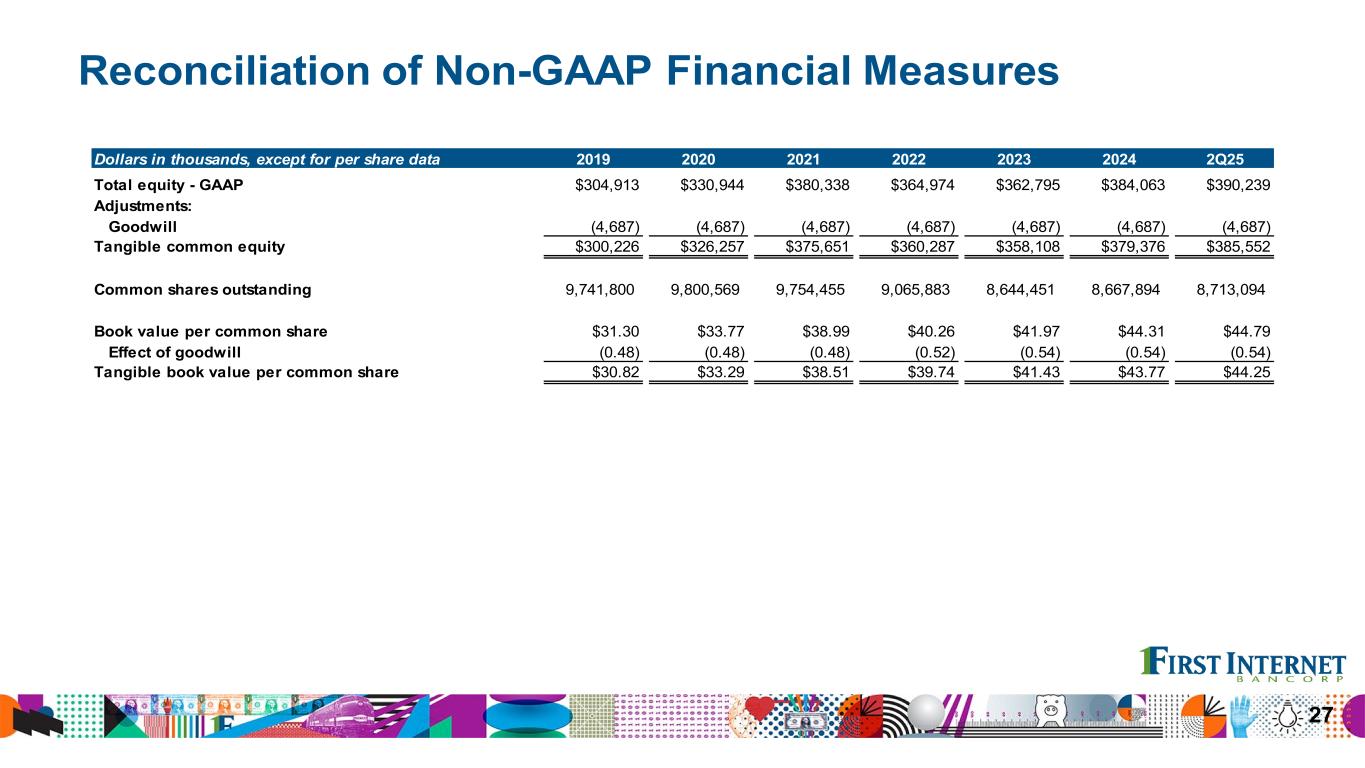 インディアナ州フィッシャーズ、2025年7月23日 - ファースト・インターネット銀行(以下「銀行」)の親会社であるファースト・インターネット・バンコープ(以下「当社」)(Nasdaq: INBK)は本日、2025年6月30日を期末とする第2四半期の財務および営業実績を発表した。