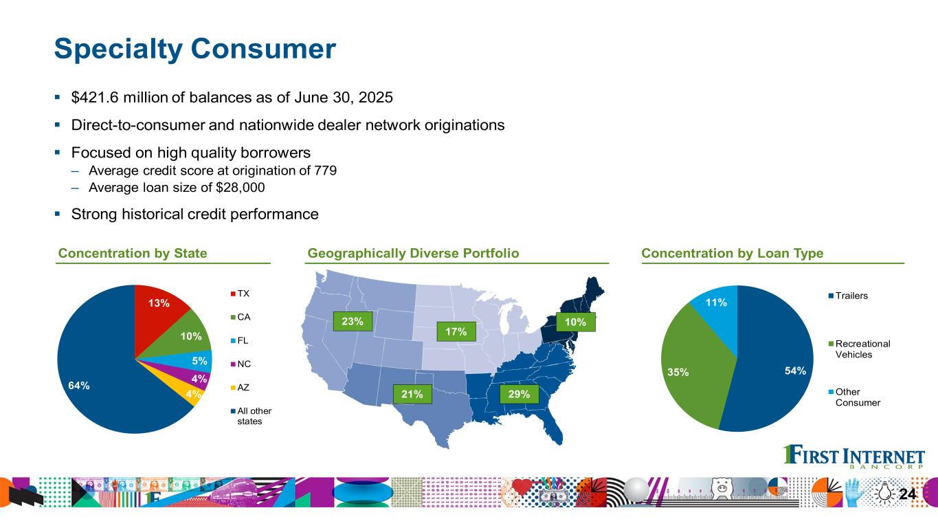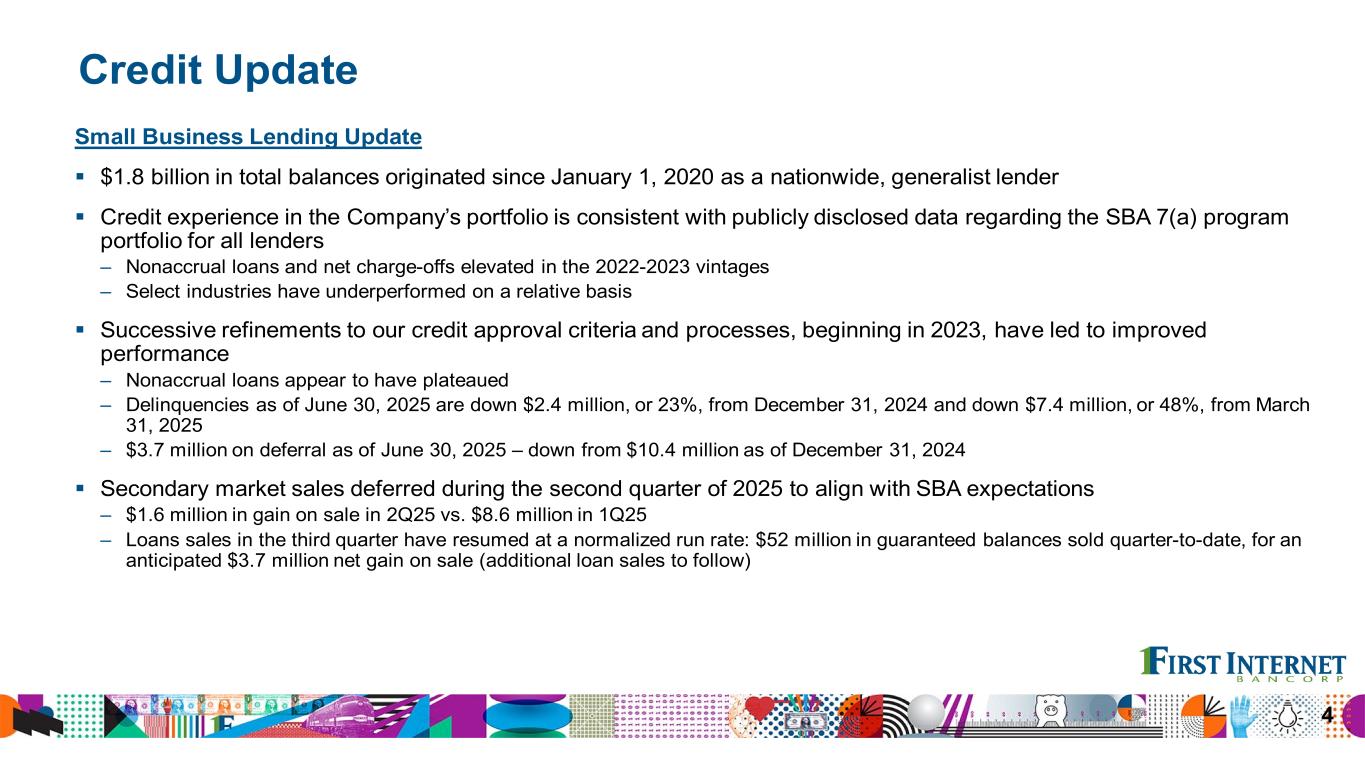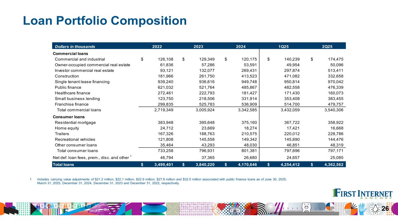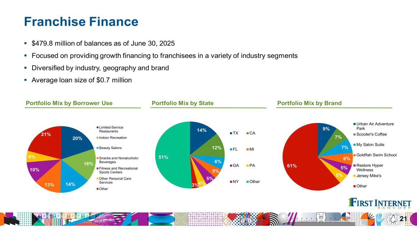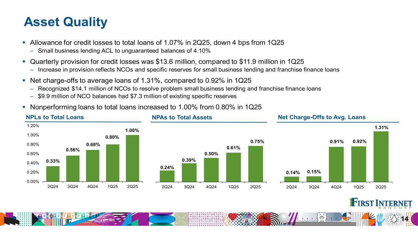 インディアナ州フィッシャーズ、2025年7月23日 - ファースト・インターネット銀行(以下「銀行」)の親会社であるファースト・インターネット・バンコープ(以下「当社」)(Nasdaq: INBK)は本日、2025年6月30日を期末とする第2四半期の財務および営業実績を発表した。