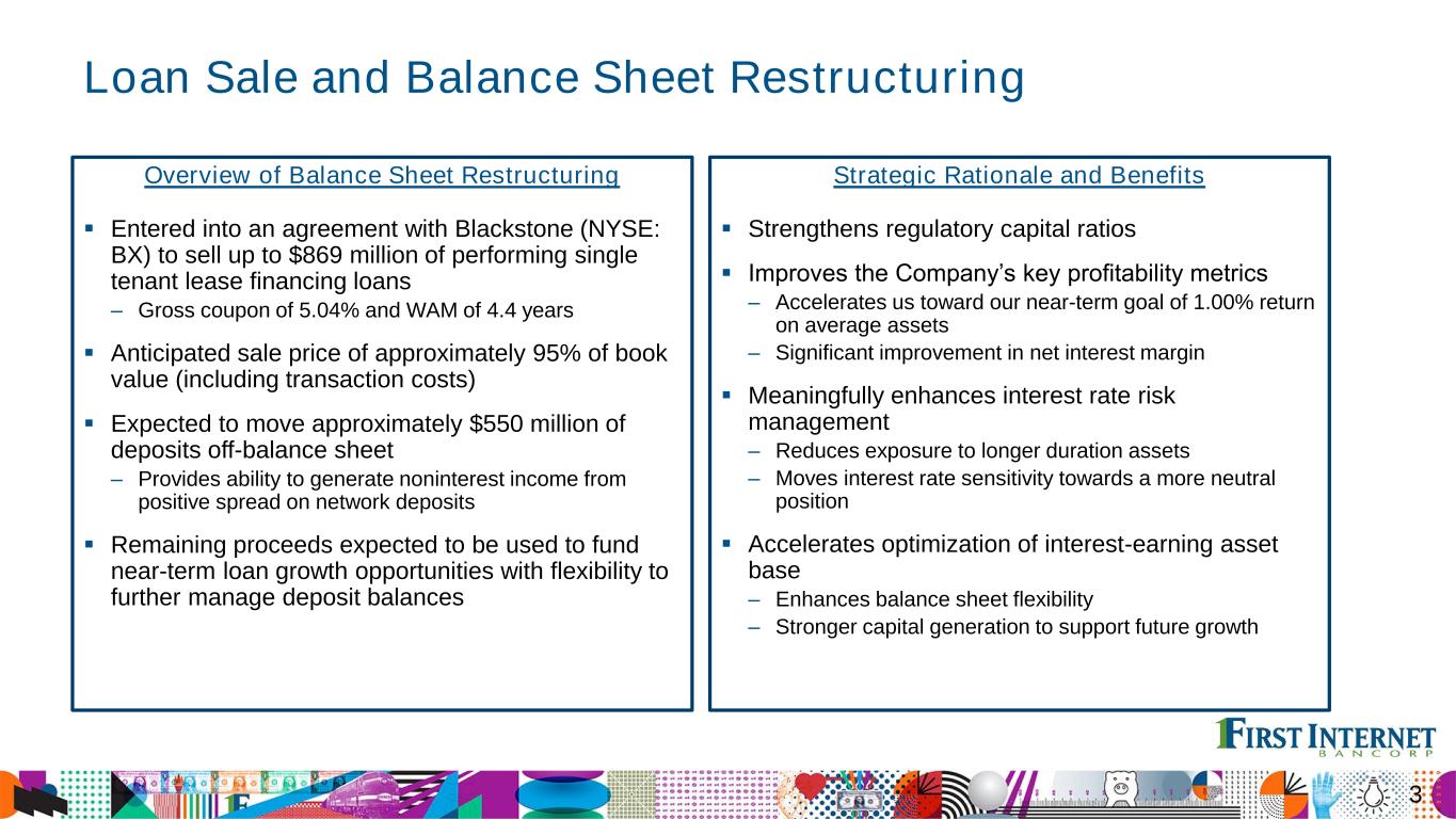 本ローン・ポートフォリオ購入契約(「本契約」)は、2025 年 9 月 5 日付で、インディアナ州認可銀行 FIRST INTERNET BANK OF INDIANA(「売主」)と EVERLAKE LIFE INSURANCE COMPANY(「エバーレイク購入者」)、NEW YORK LIFE INSURANCE AND ANNUITY CORPORATION(「NY LIFE 購入者」)、デラウェア州法人イリノイ州法人 EVERLAKE LIFE INSURANCE COMPANY(以下「EVERLAKE 購入者」)、デラウェア州法人 NEW YORK LIFE INSURANCE AND ANNUITY CORPORATION(以下「NY LIFE 購入者」)、コロラド州法人 SECURITY LIFE OF DENVER INSURANCE COMPANY(以下「SECURITY LIFE 購入者」)、アイオワ州法人 FIDELITY & GUARANTY LIFE INSURANCE COMPANY(以下「フィデリティ生命購入者」)、アラバマ州法人 PROTECTIVE LIFE INSURANCE COMPANY(以下「プロテクティブ生命購入者」)、デラウェア州有限責任会社 NNN CML BORROWER LLC(以下「NNN購入者」、また、Everlake 購入者、NY Life 購入者、Security Life 購入者、Fidelity 購入者、Protective Life 購入者と共に、文脈に応じて個々に、および/または総称して「購入者」)。