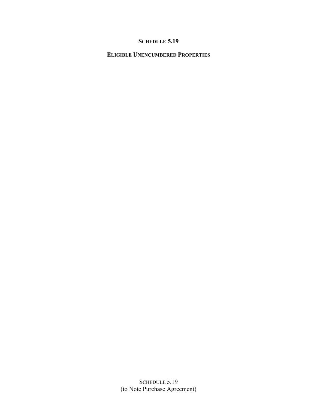 SCHEDULE 5.19 (to Note Purchase Agreement) SCHEDULE 5.19 ELIGIBLE UNENCUMBERED PROPERTIES