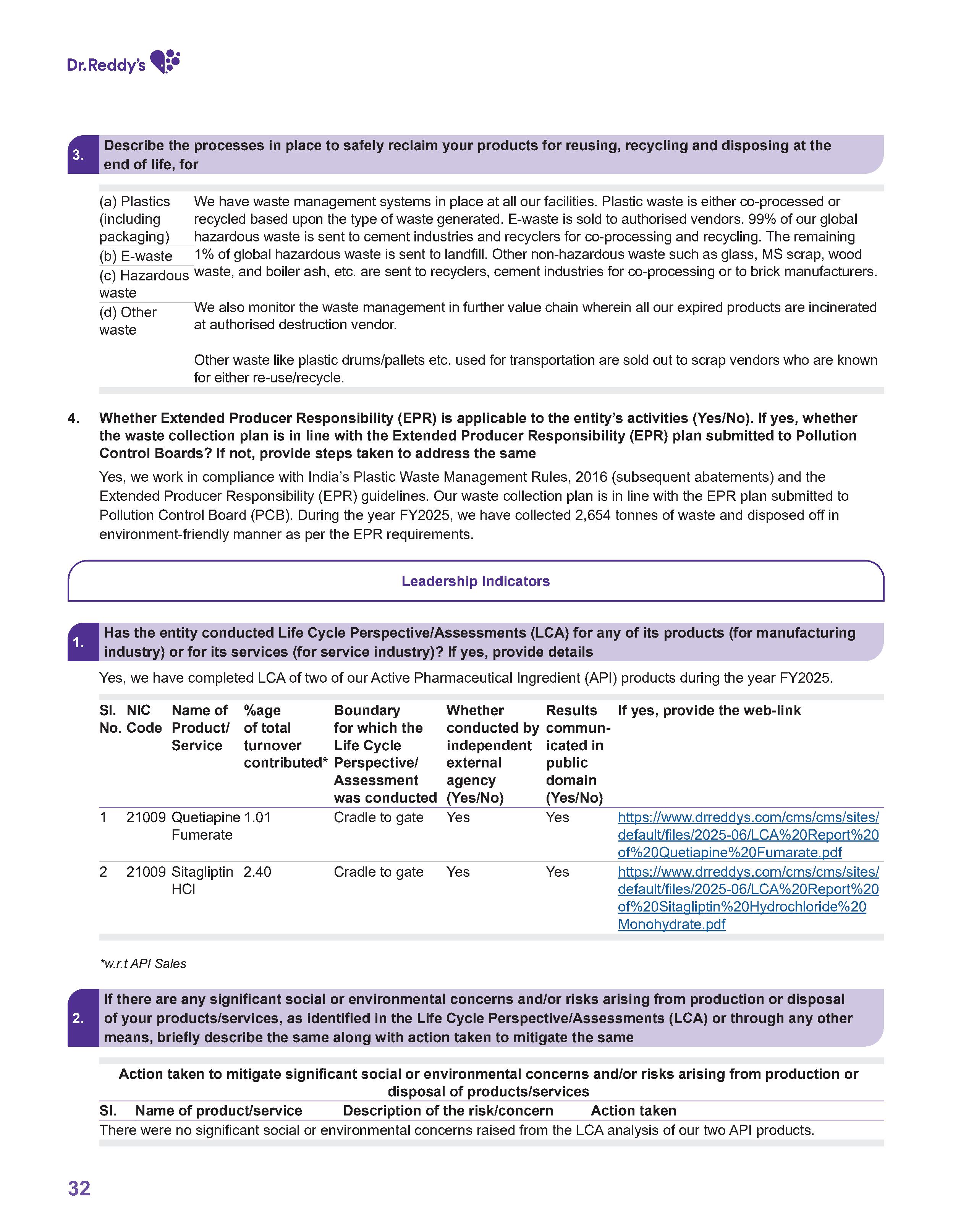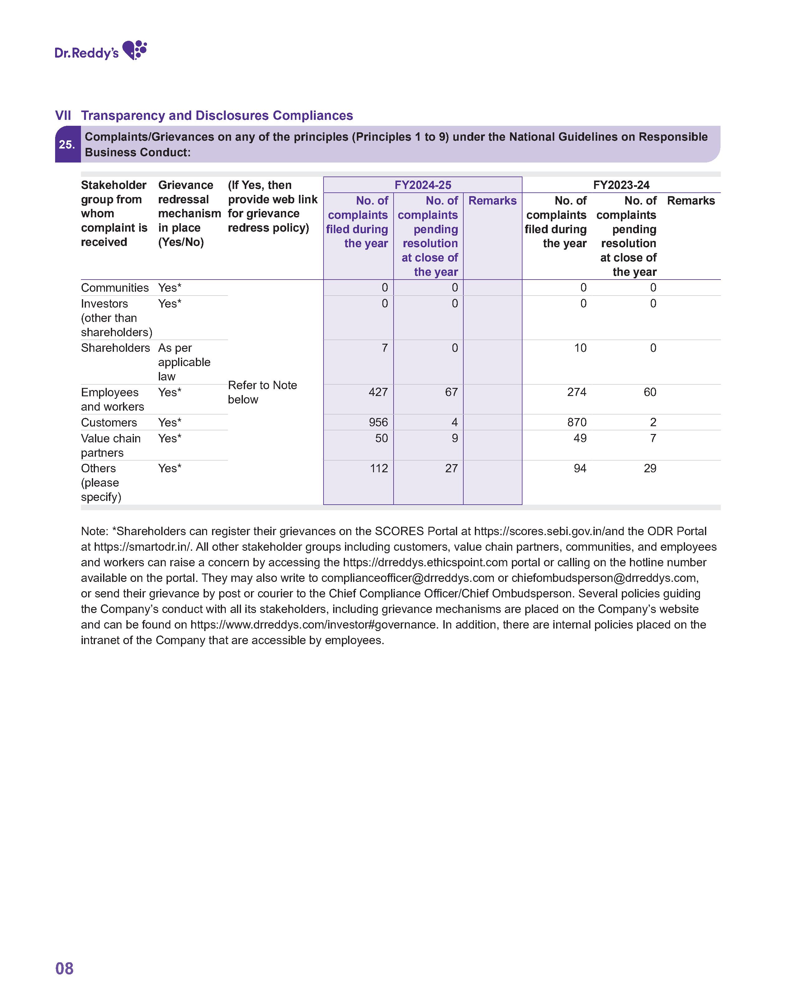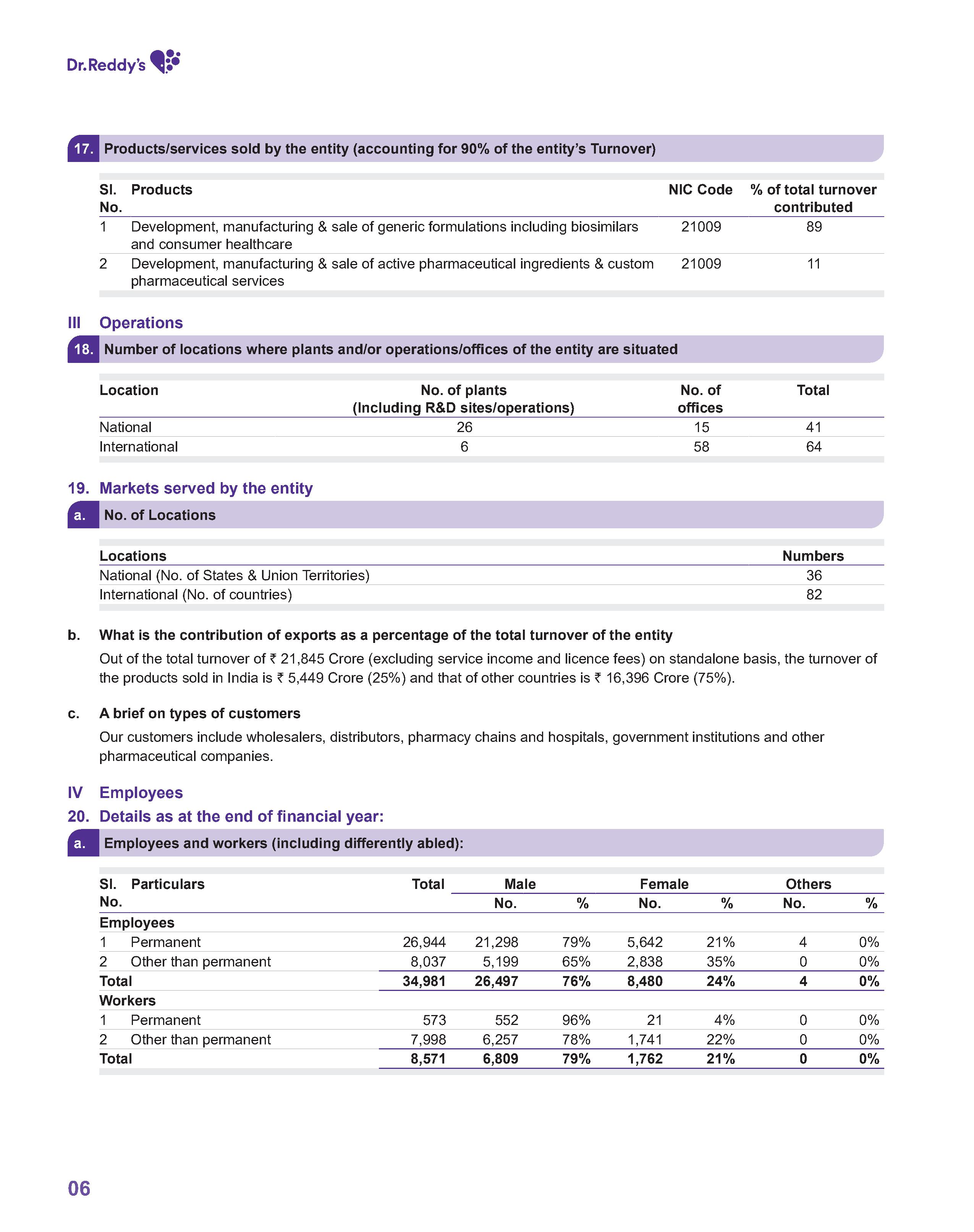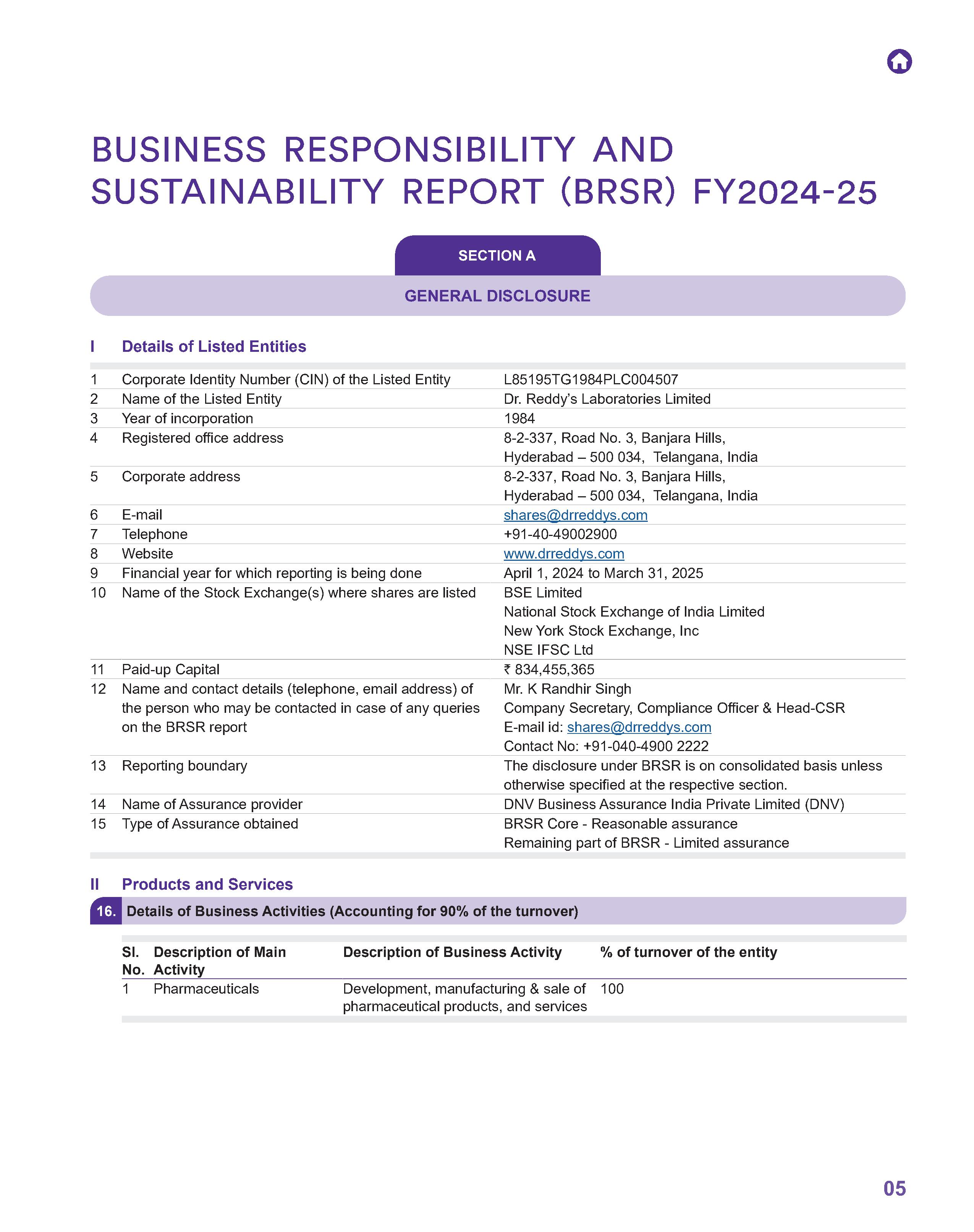 Dr. Reddy's Laboratories Ltd. 8-2-337, Road No. 3, Banjara Hills Hyderabad – 500 034, Telangana, India CIN: L85195TG1984PLC004507