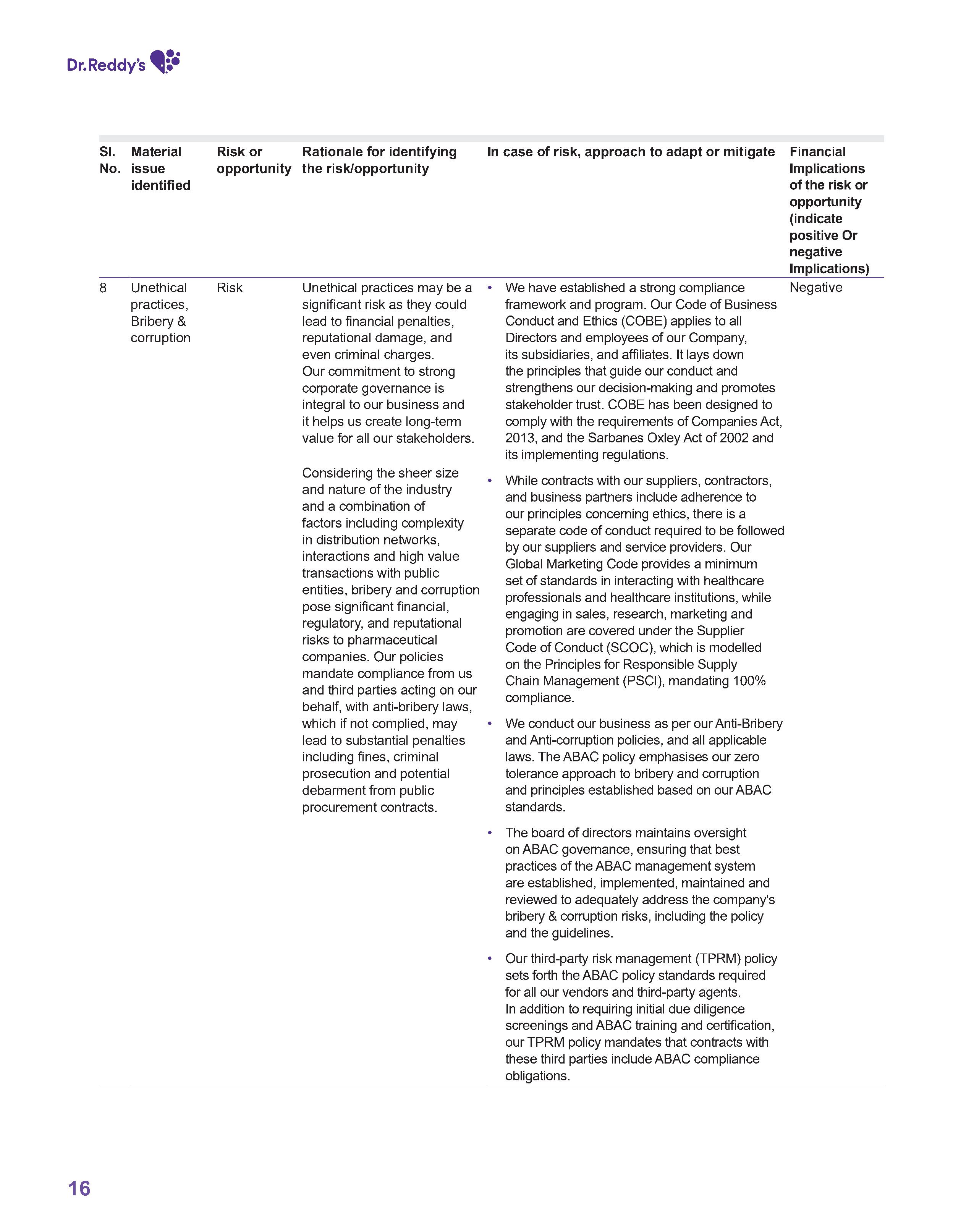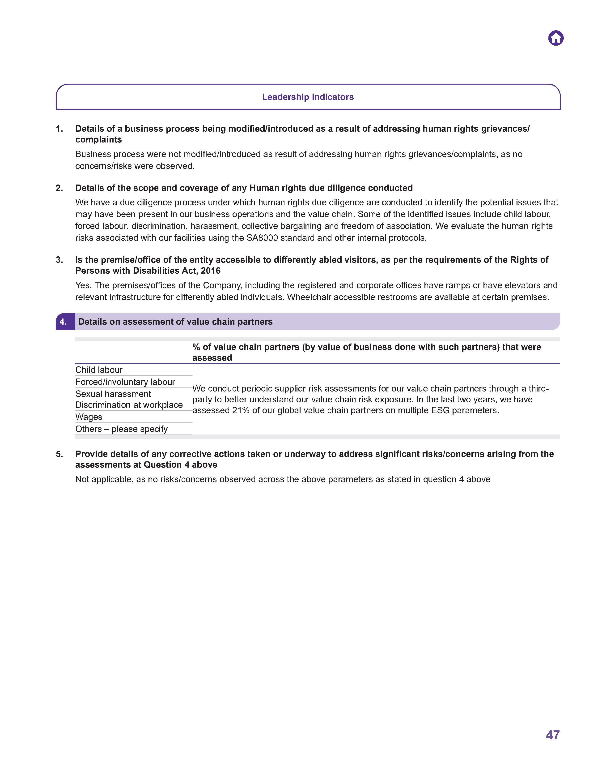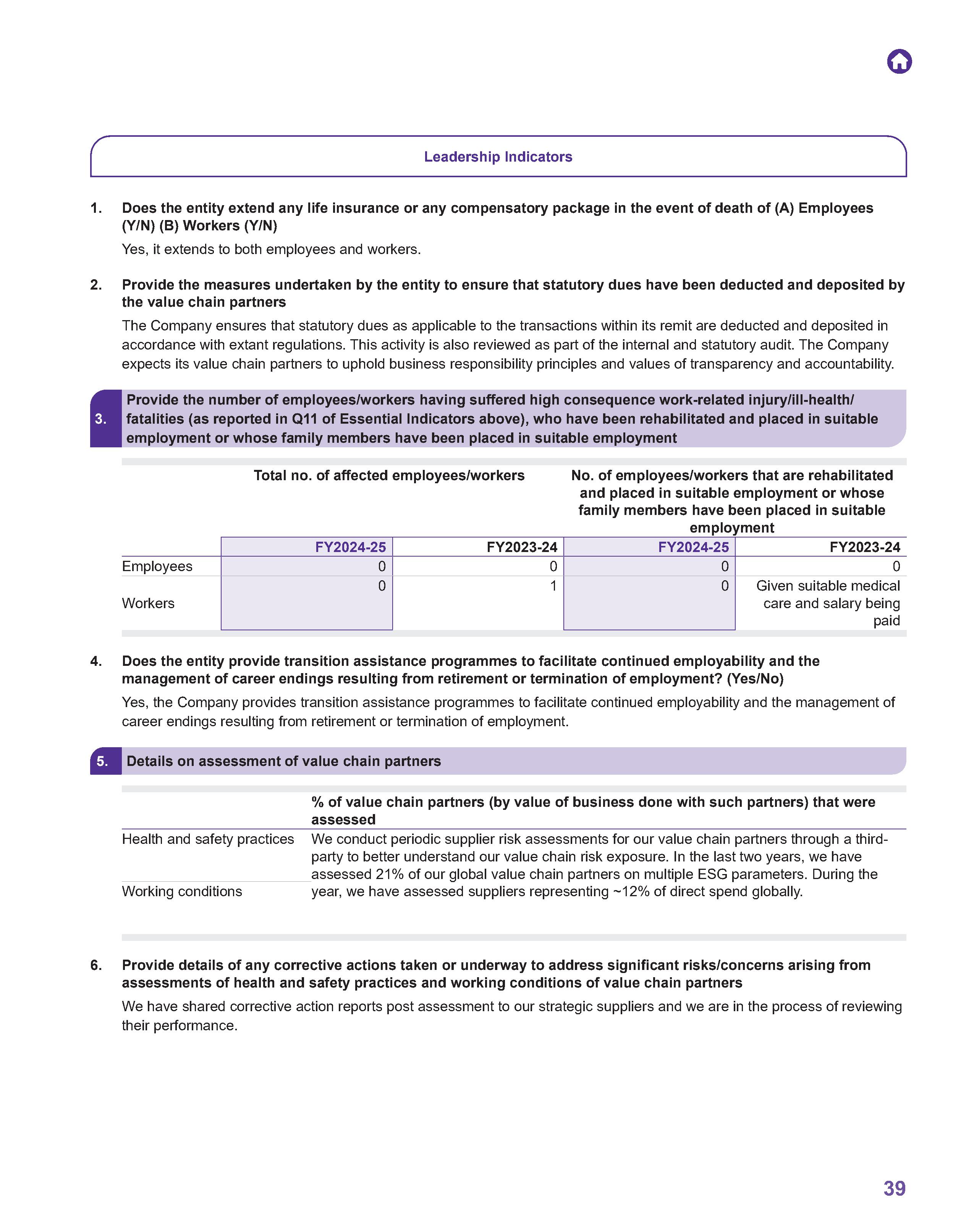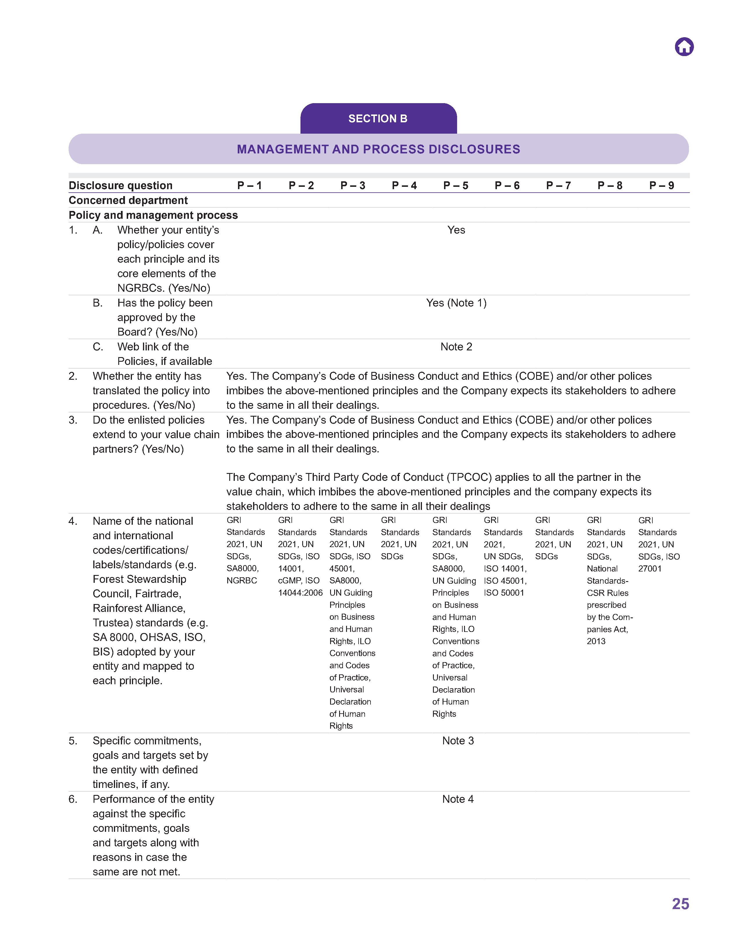 Pursuant to Regulation 34(2)(f) of the SEBI (Listing Obligations and Disclosure Requirements) Regulations, 2015, please find enclosed copy of the Business Responsibility and Sustainability Report (‘BRSR’) for the Financial Year 2024-25. The BRSR forms an integral part of the Integrated Annual Report of the Company for the Financial Year 2024-25