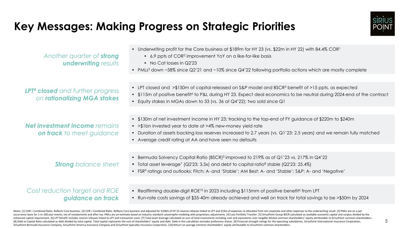 保険引受成績は好調で、中核事業のコンバインド・レシオは 84.4%であった。投資ポートフォリオは引き続き質の高い債券に焦点を絞っており、2023 年通年の純投資利益ガイダンスの上限である 2 億 2,000 万ドルから 2 億 4,000 万ドルを達成しつつあります。経常費用は基礎ベースで前年比3500万~4000万ドル削減され、2024年末までに5000万ドル以上削減するという目標に自信を持っています。バランスシートは、1億5,000万ドル以上の資本を放出し、今後の戦略に沿ったバランスシートを構築するため、損失ポートフォリオの移管を完了したことで、さらに強固なものとなりました。最後に、事業の全分野が資本を生み出しており、今年は2桁のROEを達成する予定である。