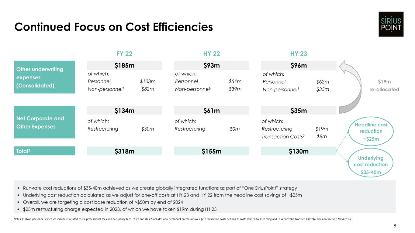 -2023年に平均株主資本利益率(ROE)2桁の達成を目指し、2024年に5,000万ドル超のコスト削減、2023年に2億2,000万ドル~2億4,000万ドルの純投資利益というガイダンスを再提示。