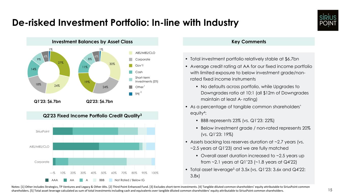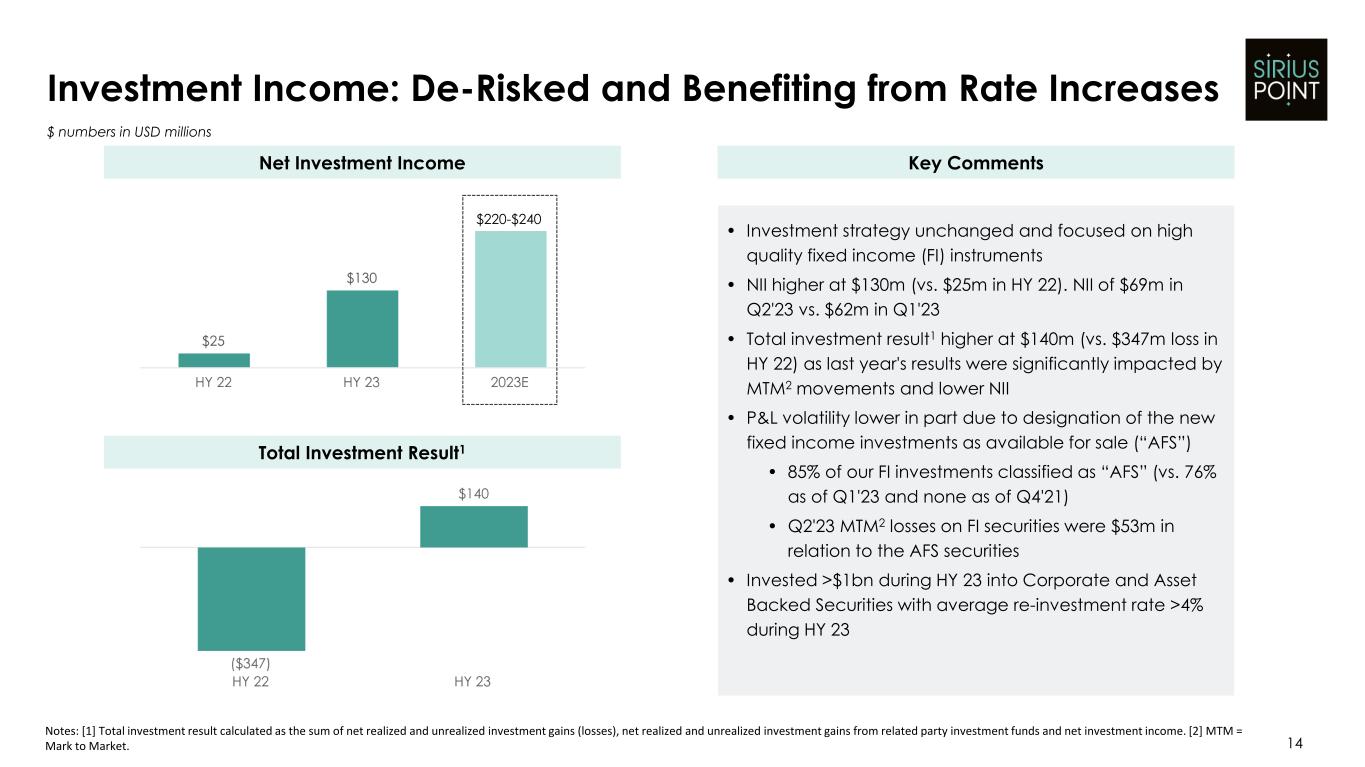 2023年6月30日に終了した6ヵ月間の実現および未実現の投資利益合計ならびに正味投資利益は、主に負債および短期投資ポートフォリオからの1億3,750万ドルの受取利息に関連する正味投資利益に起因する。配当金および投資利益の増加は、高品位の債券への投資に焦点を当てたポートフォリオの再ポジショニングを継続し ていることによるものです。